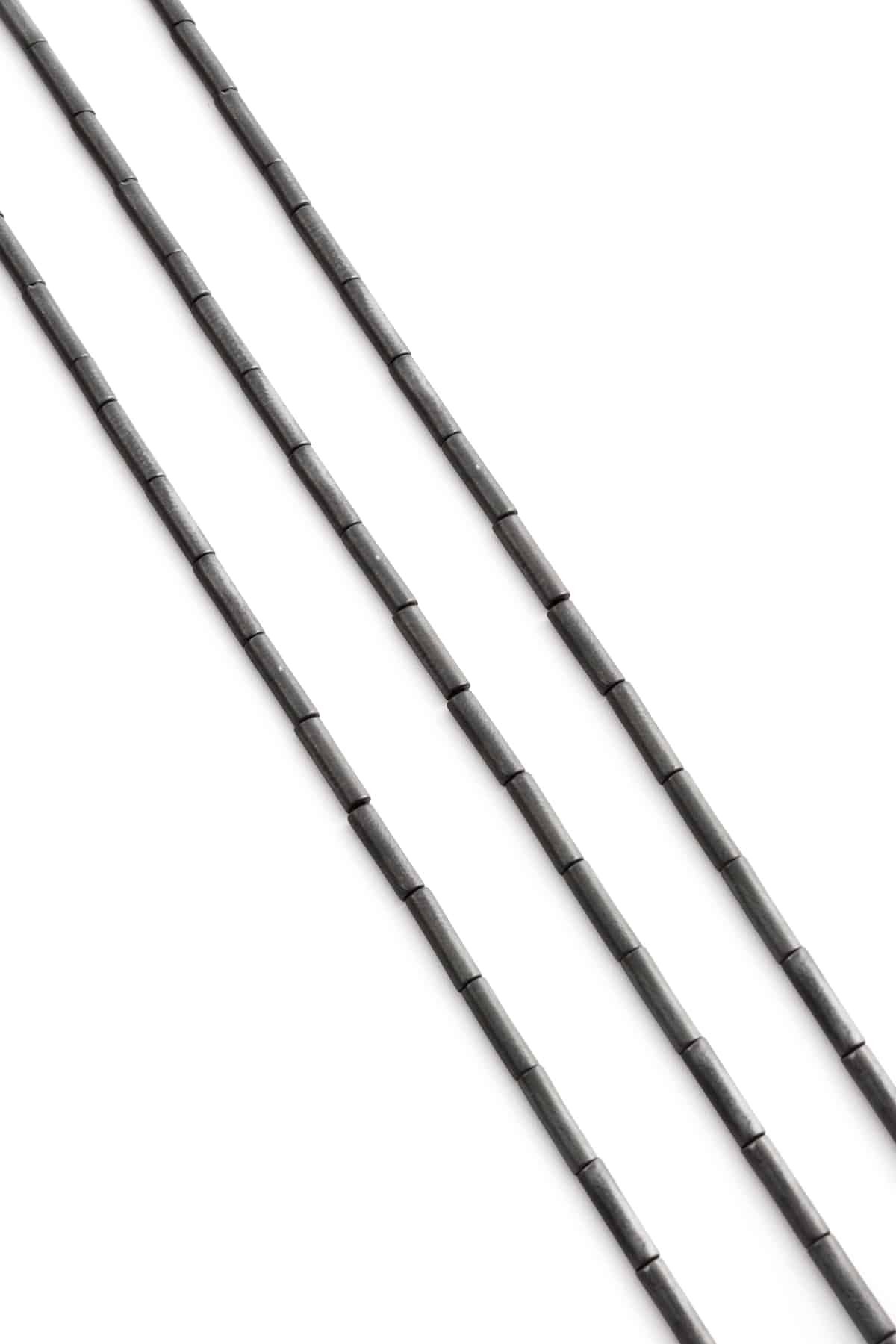 Hematite Natural Stone Matte Grey Cylinder Cut 2x8mm String Of Beads (5055-0001)