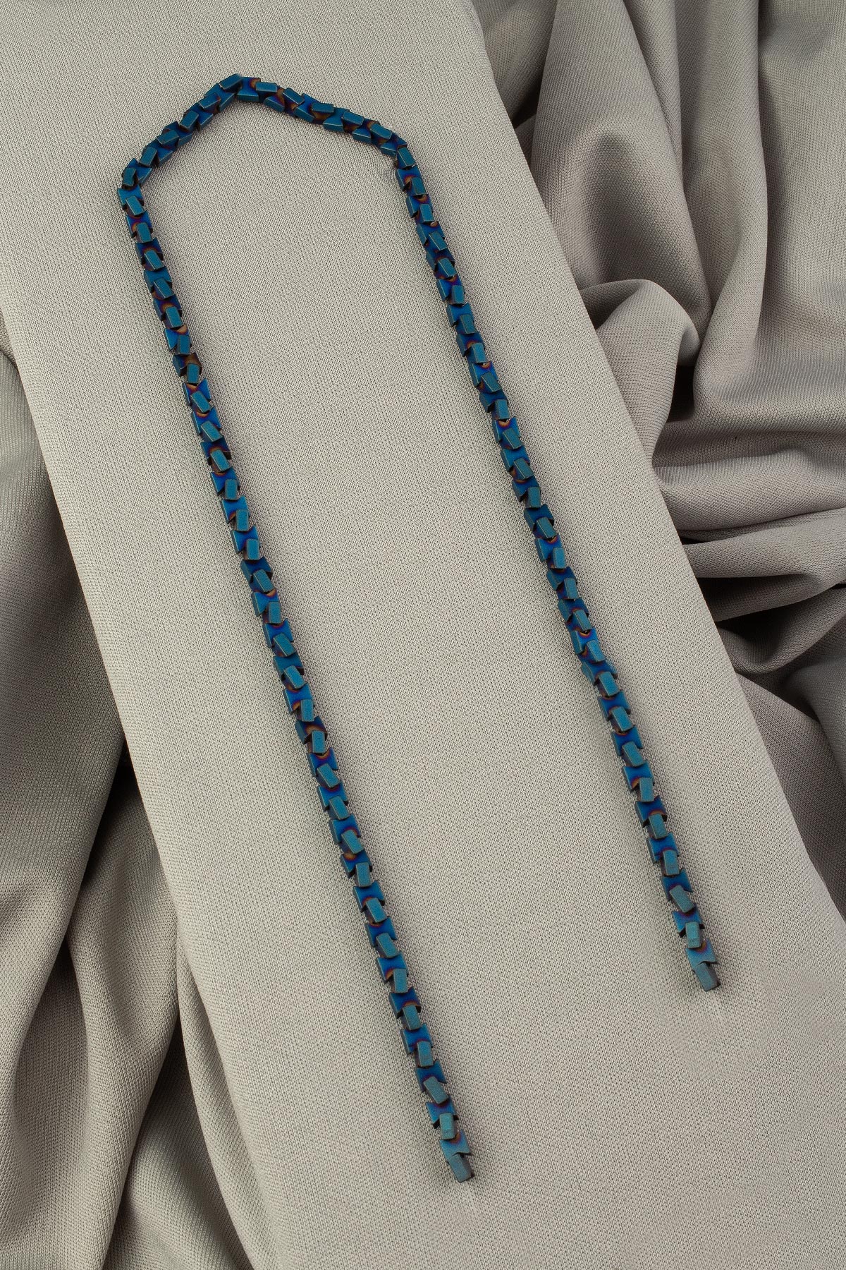 Hematite Natural Stone Matte Blue Bow Cut 7x7mm String Of Beads (5143-0008)