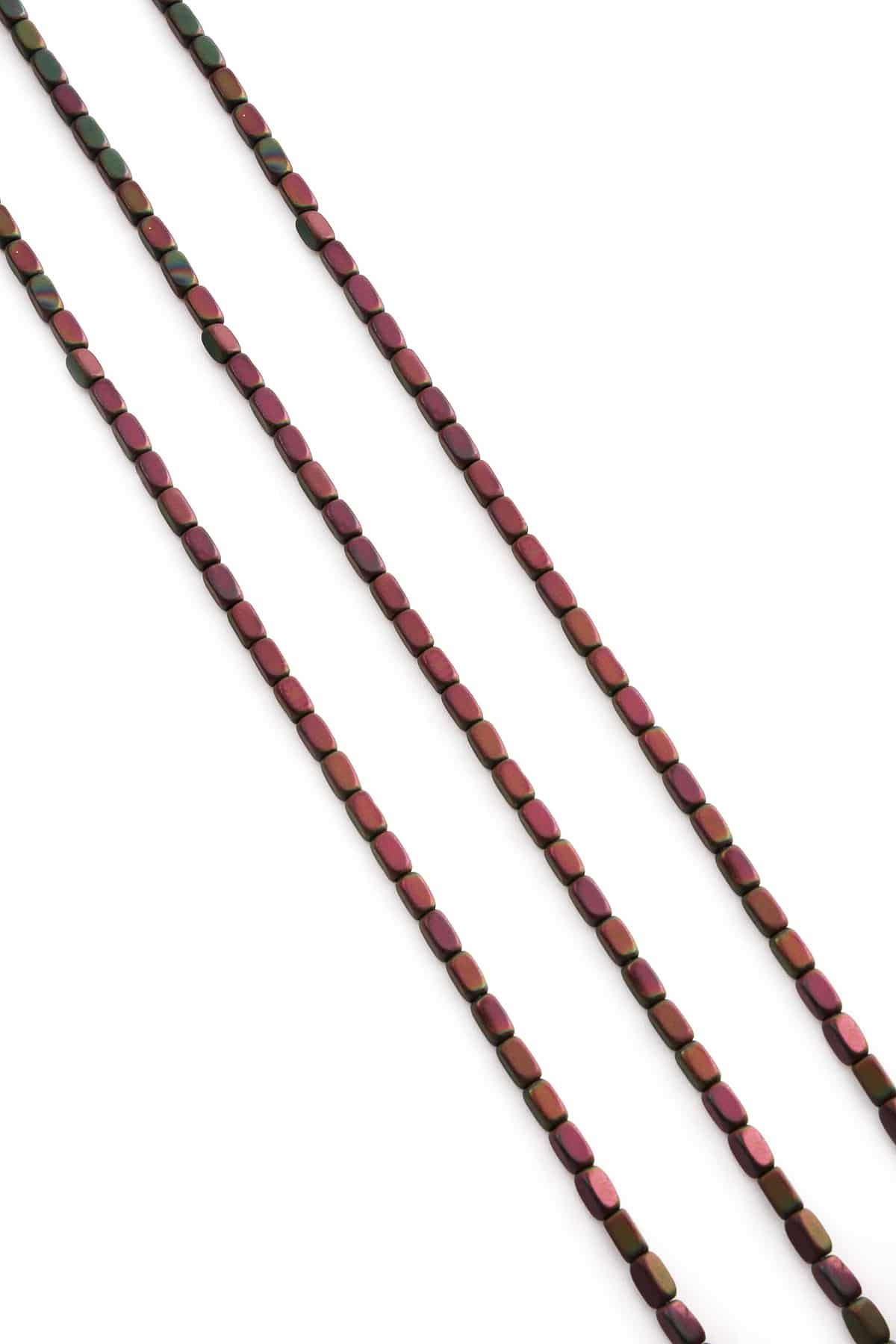 Hematite Natural Stone Matte Black Rainbow Rectangular Cut 2x4mm String Of Beads (5168-0003)
