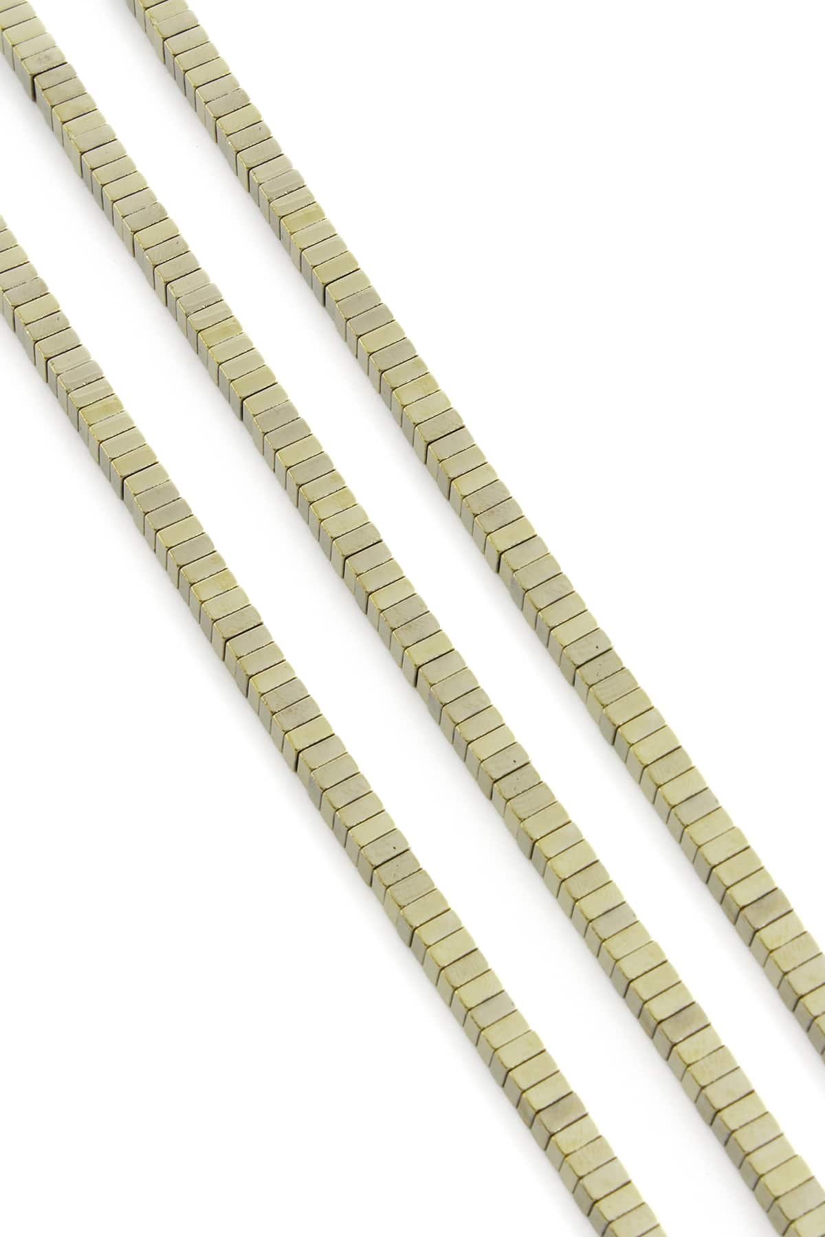 Hematite Natural Stone Shiny Antique Yellow Square Dore Cut 4x2mm String Of Beads
