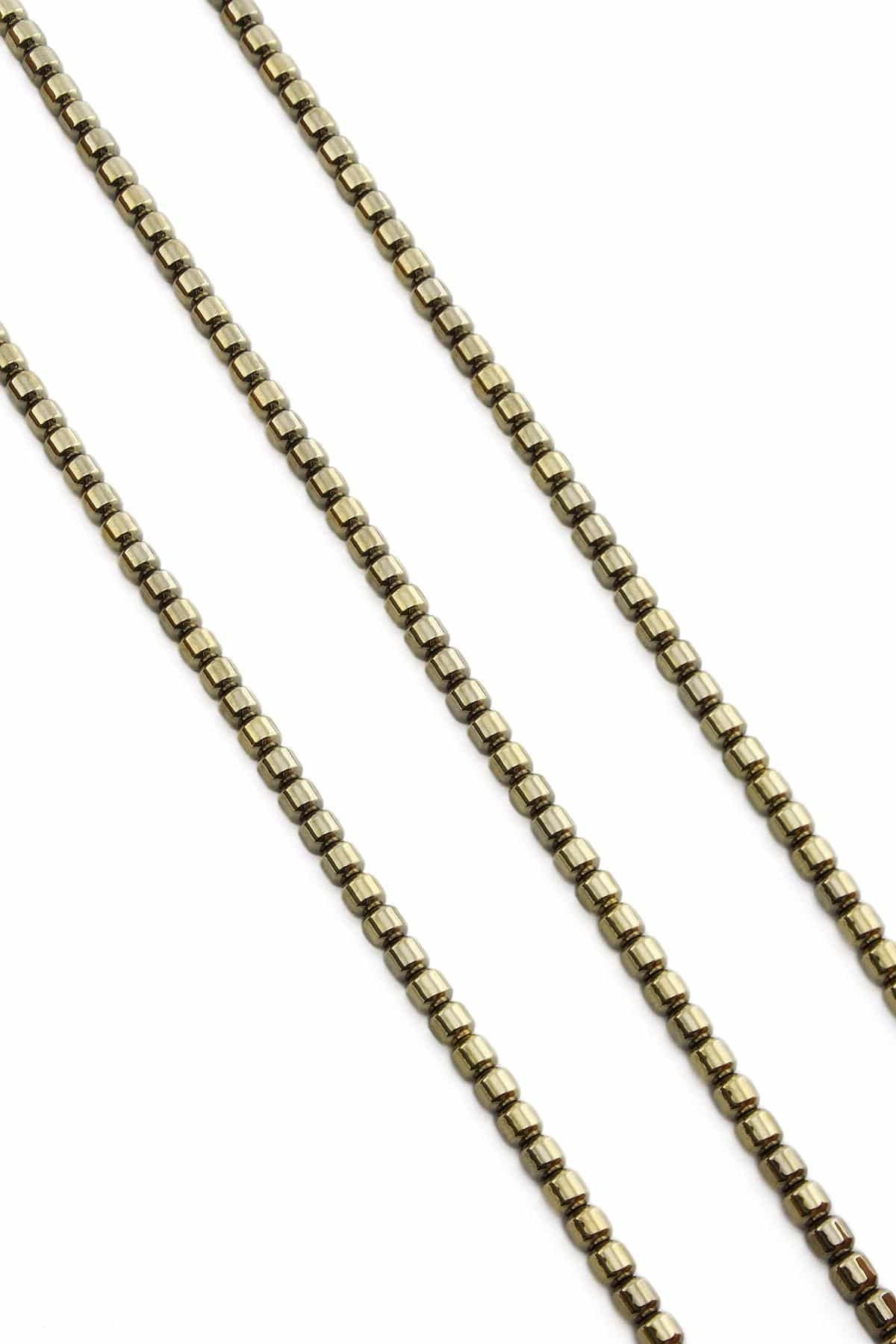 Hematite Natural Stone Shiny Antique Yellow Cylinder Cut 4mm String Of Beads