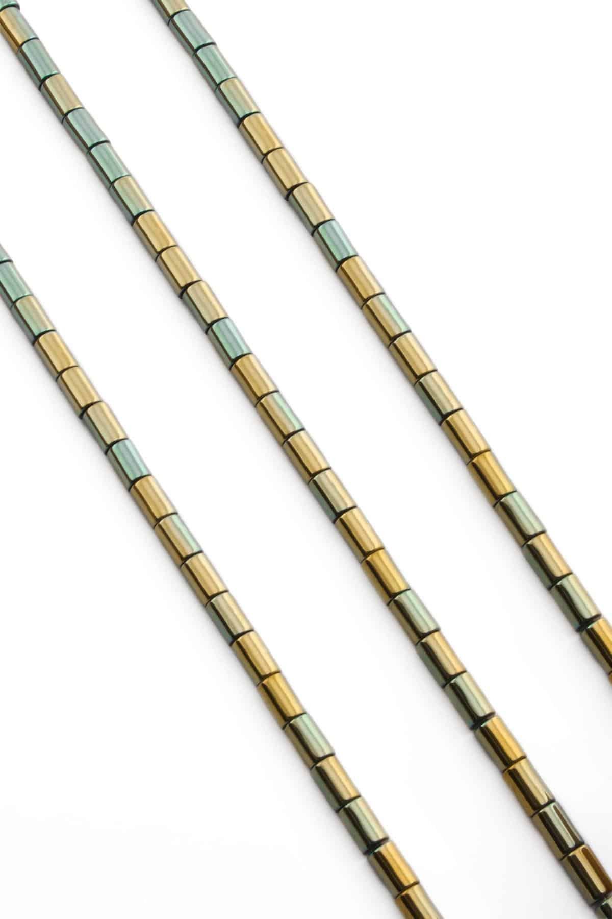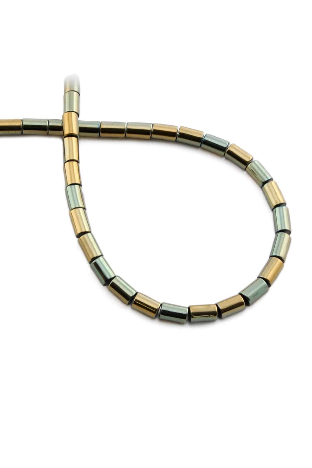 Hematite Natural Stone Shiny Antique Yellow Cylinder Cut 4x6mm String Of Beads