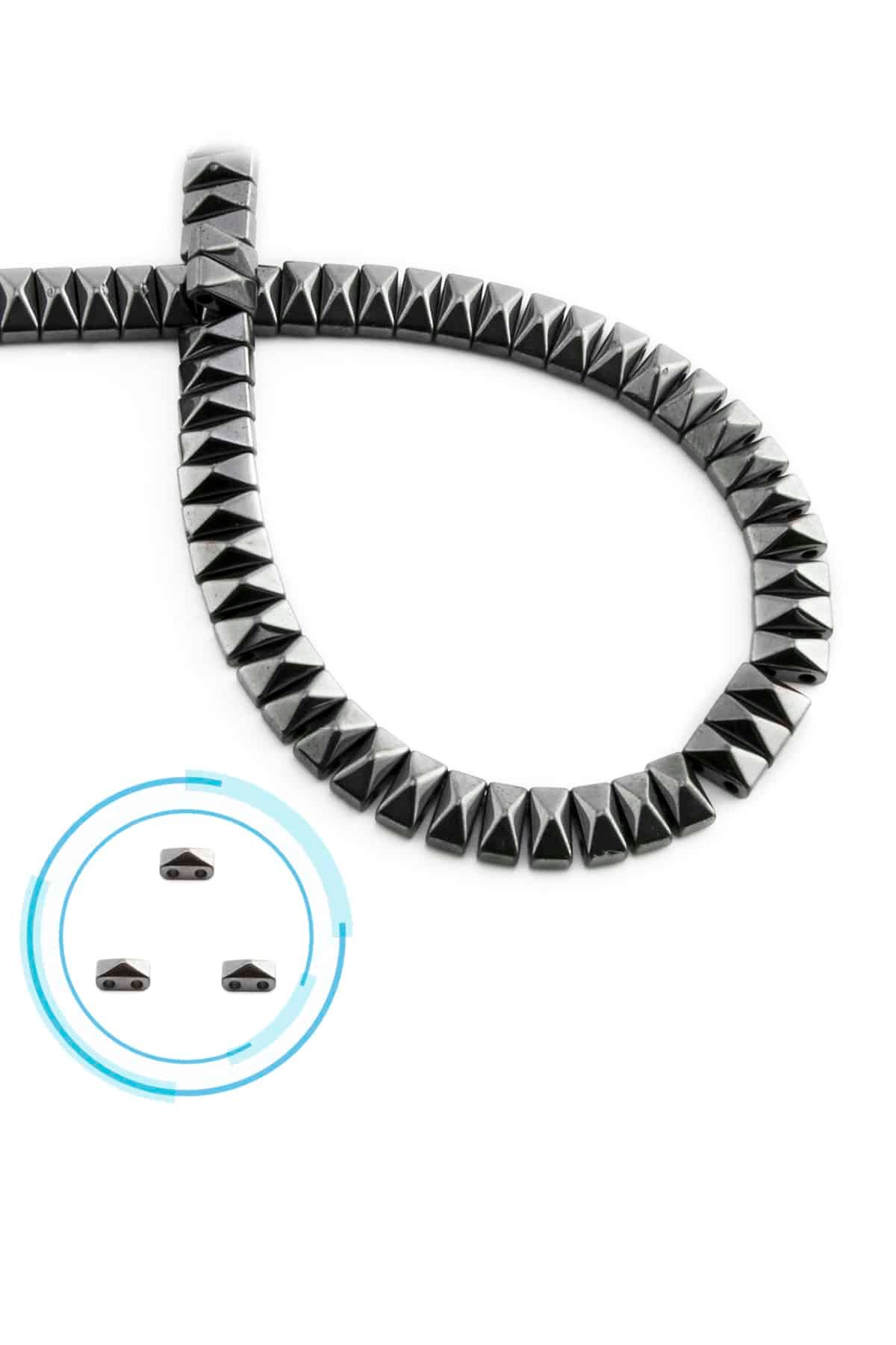 Hematite Natural Stone Shiny Smoked Pyramid Cut Double Hole 6x3mm String Of Beads (5202-0002)