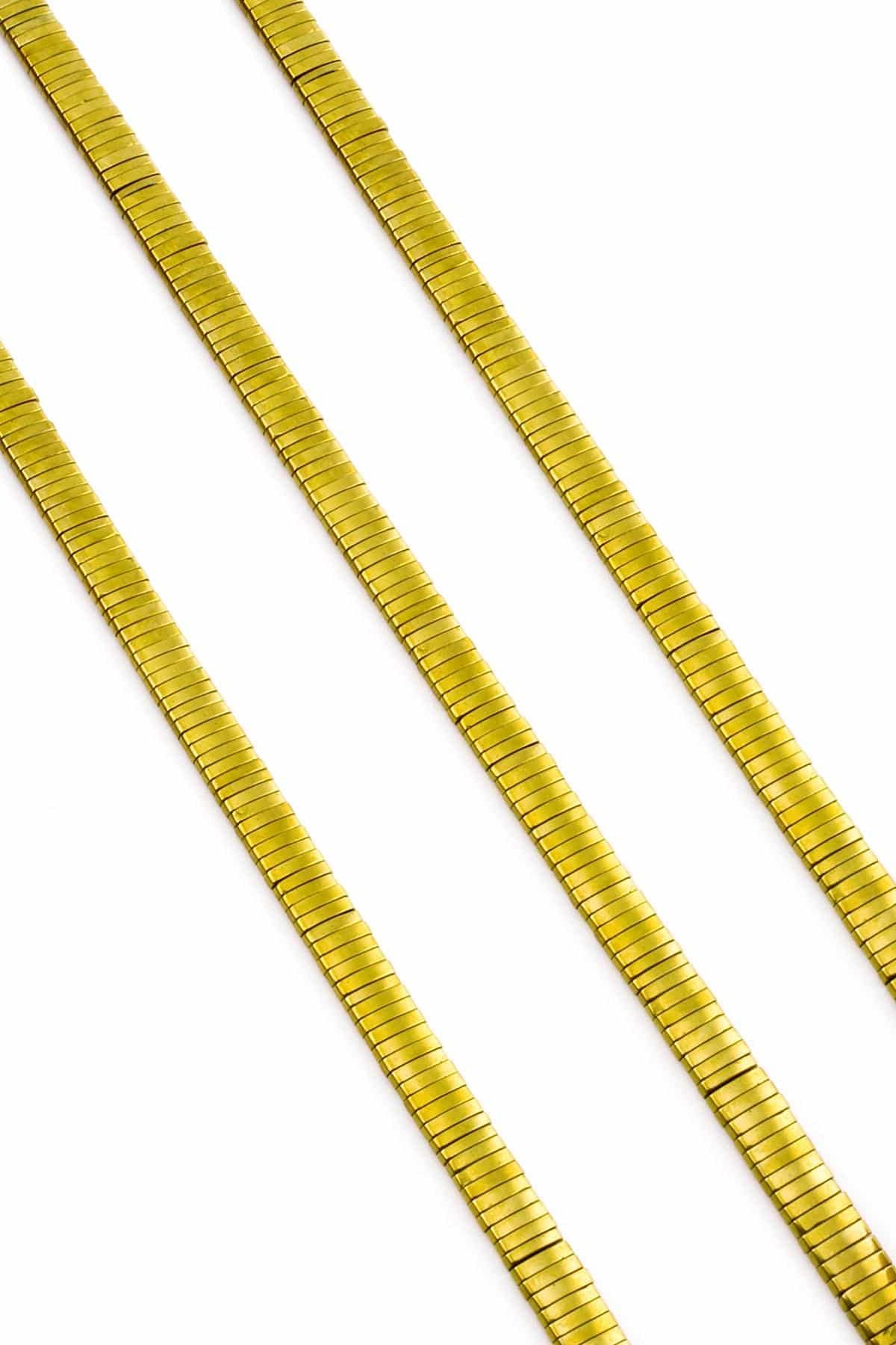 Hematite Natural Stone Shiny Gold Washer Cut Double Hole 5x1mm String Of Beads
