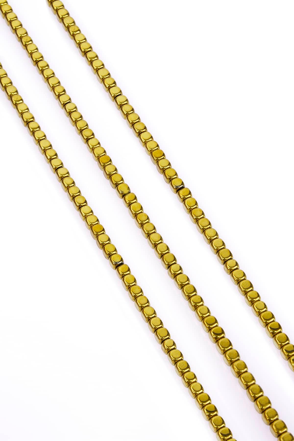 Hematite Natural Stone Shiny Gold Square Cut 4mm String Of Beads (5164-0013)