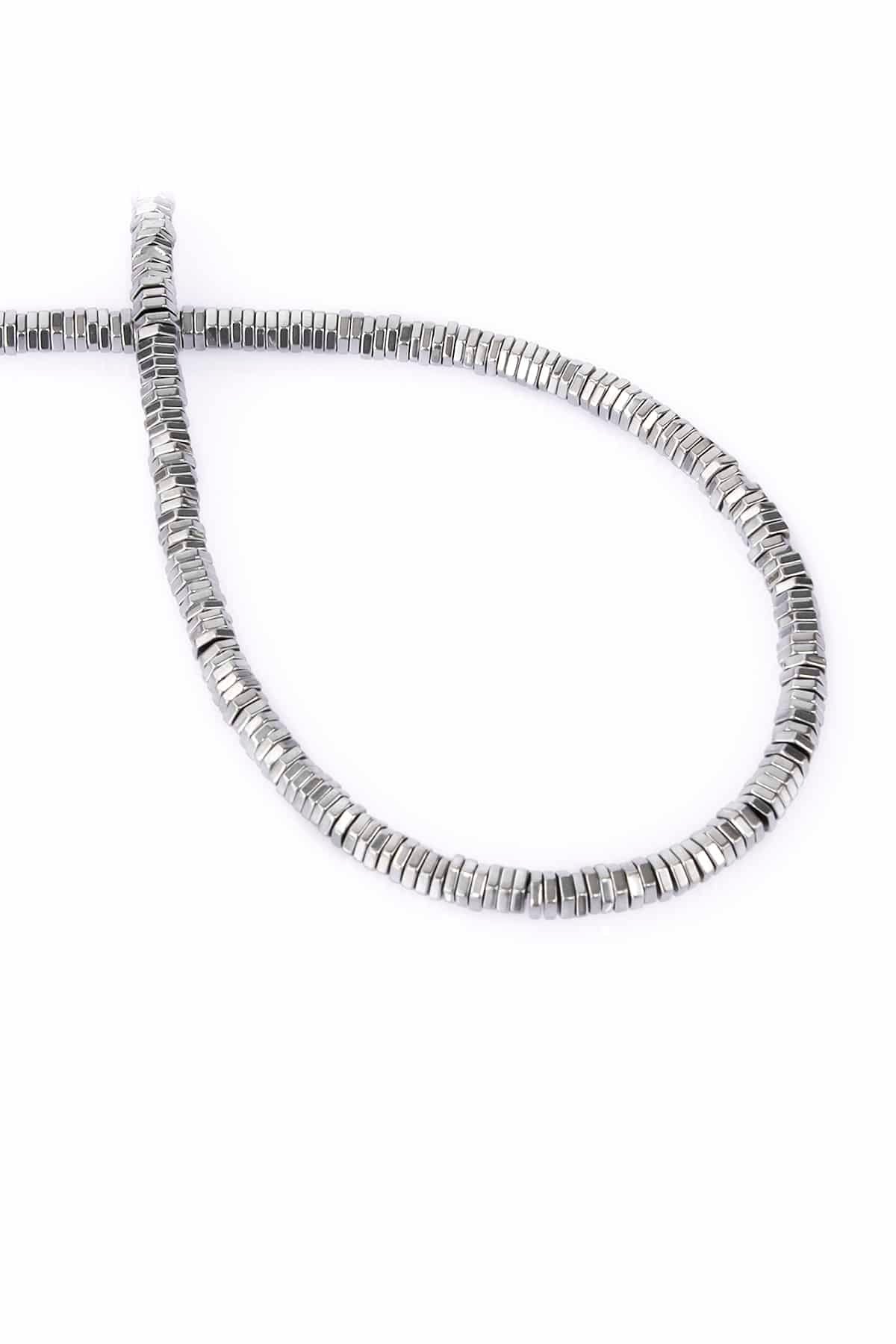Hematite Natural Stone Shiny Cylinder 4x1M String Of Beads (5159-0009)