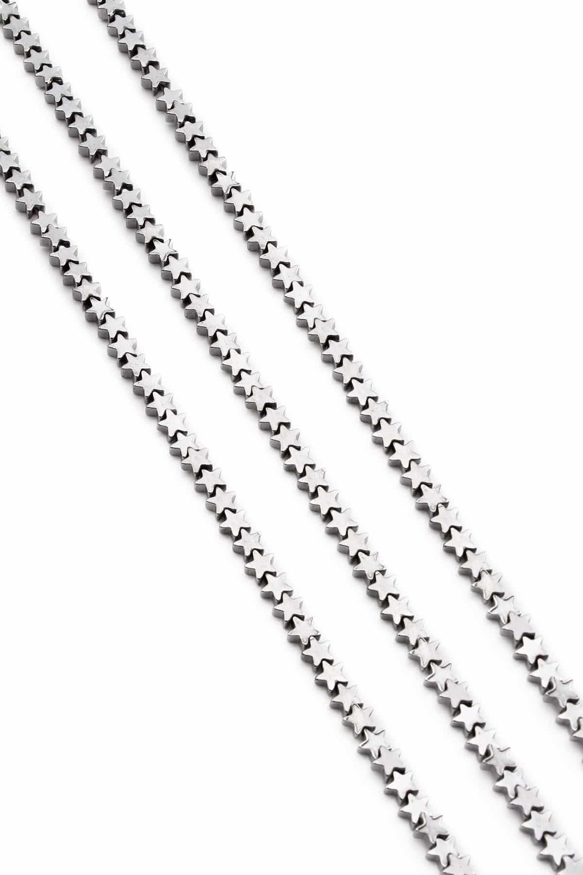 Hematite Natural Stone Shiny Cylinder Star Cut 4mm String Of Beads