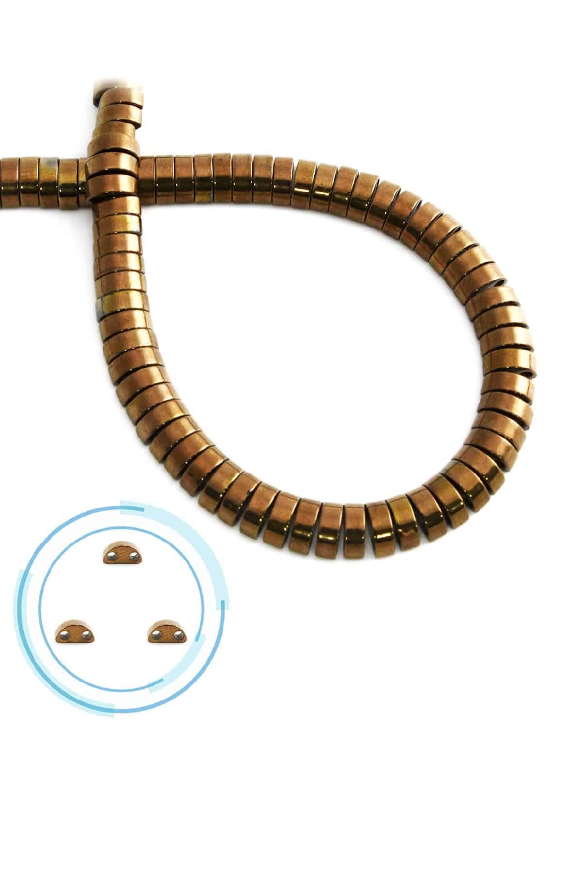 Hematite Natural Stone Shiny Brown Dished Cut Double Hole 6x2mm String Of Beads (5200-0010)