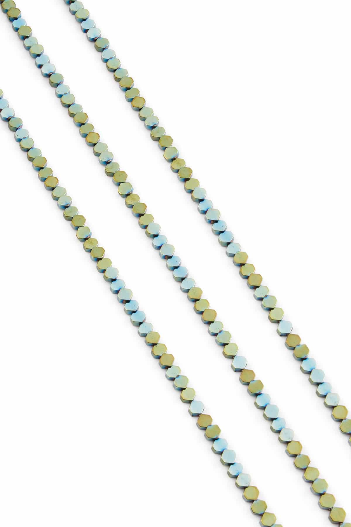 Hematite Natural Stone Shiny Water Green Hexagon Cut 4x4mm String Of Beads (5123-0025)