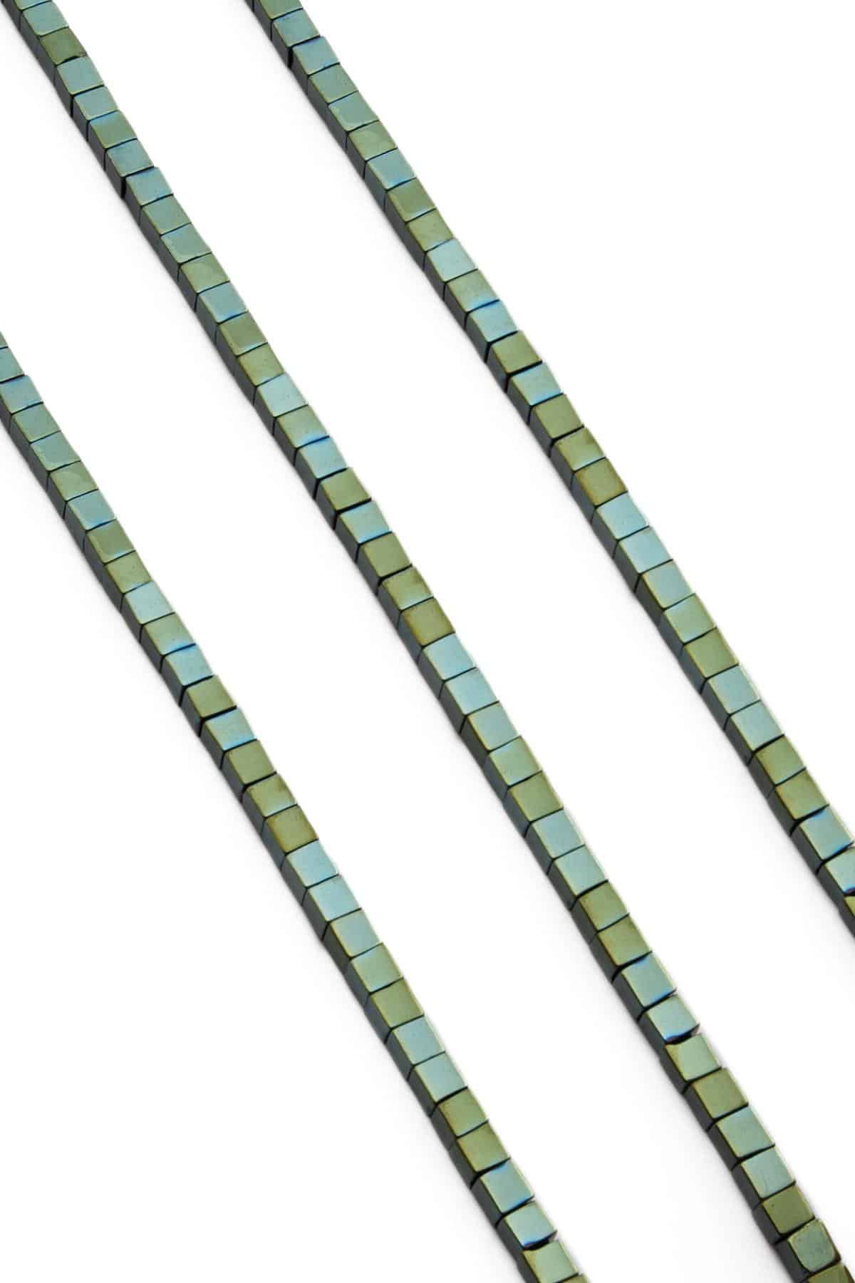 Hematite Natural Stone Shiny Green Square Cut 4x4mm String Of Beads (5080-0025)