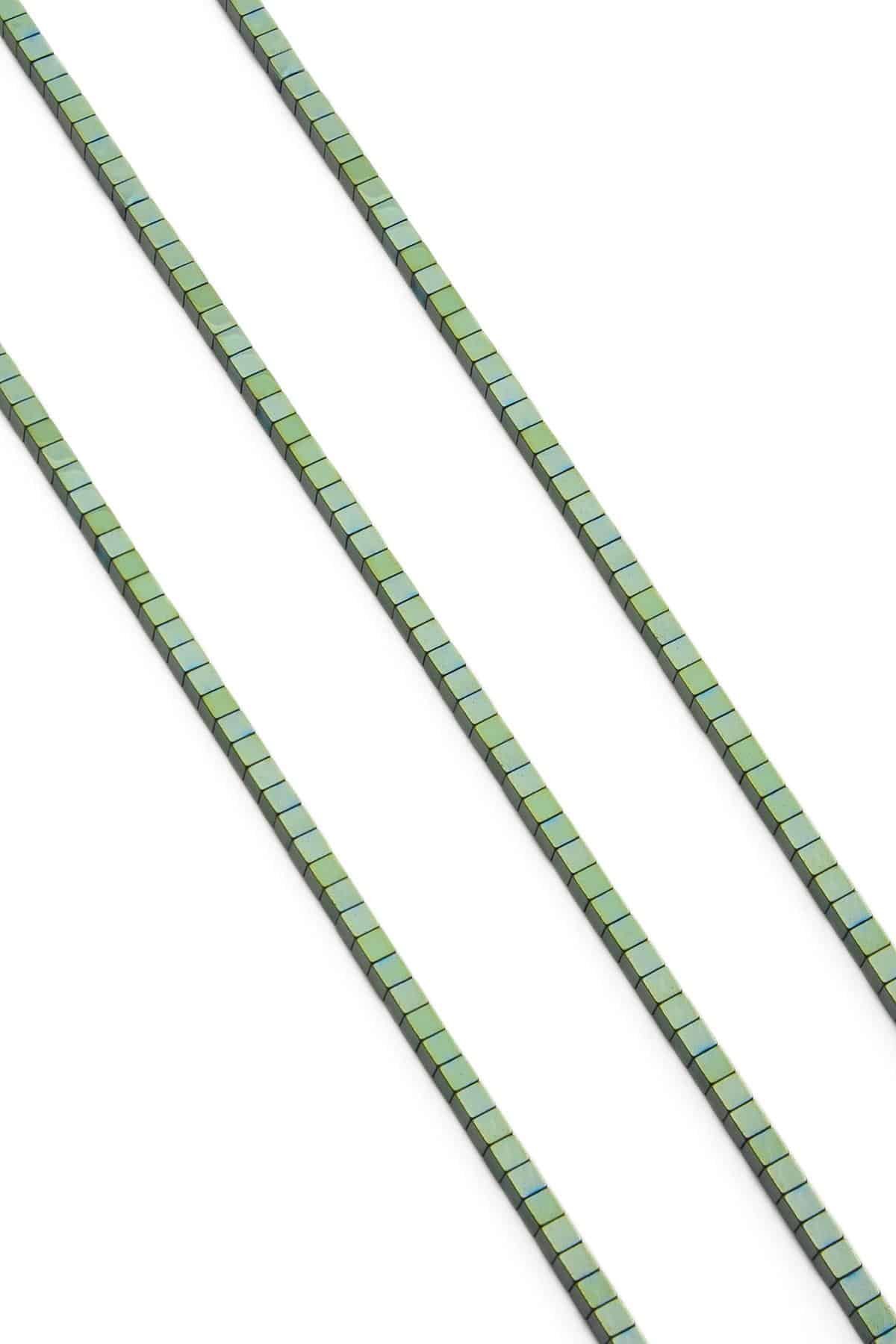 Hematite Natural Stone Shiny Green Cube Cut 3x3mm String Of Beads