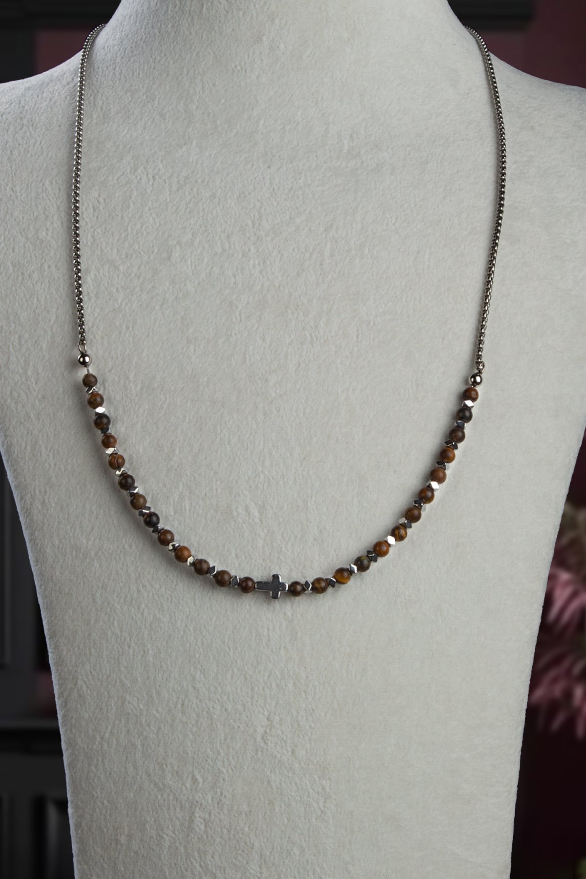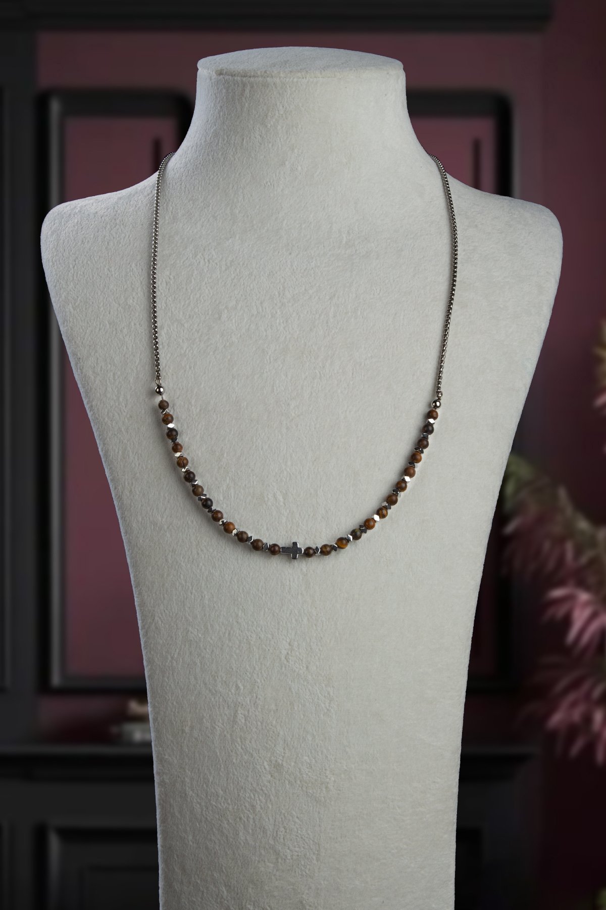 Hematit-Kaplangözü Doğal Taş Çelik Erkek Kolye (KLYDGL-1577)
