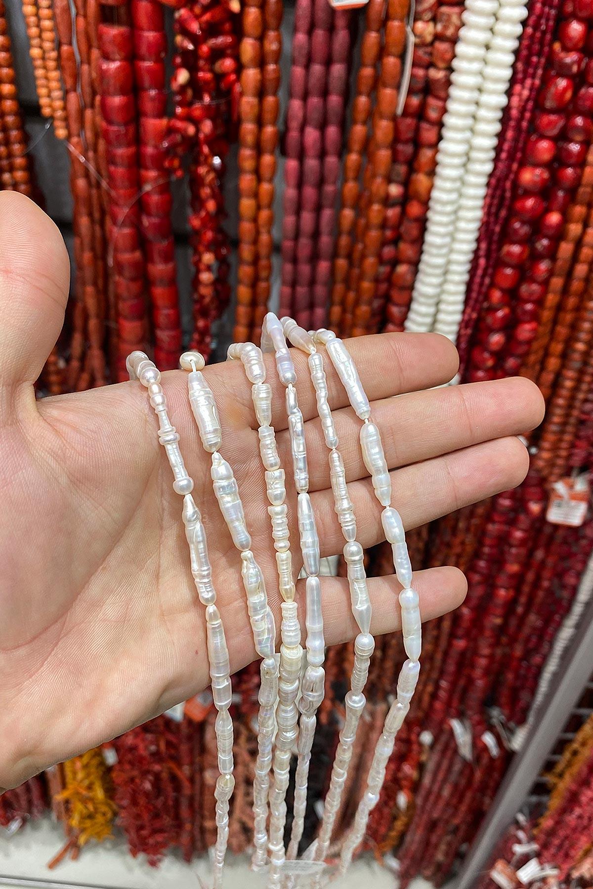 İnci Doğal Taş Beyaz Çubuk Kesim 4x12mm Dizi