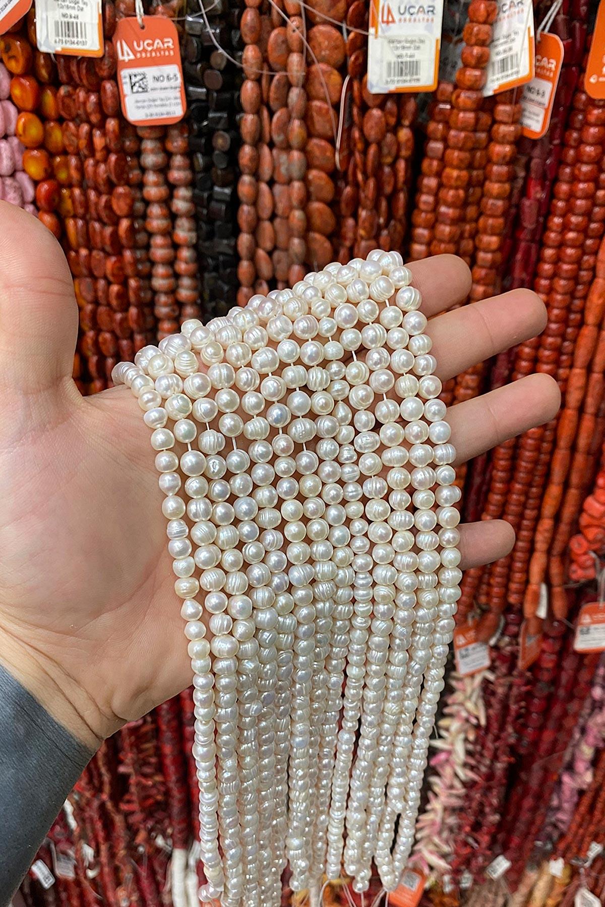 İnci Doğal Taş Beyaz Küre Kesim 7mm Dizi
