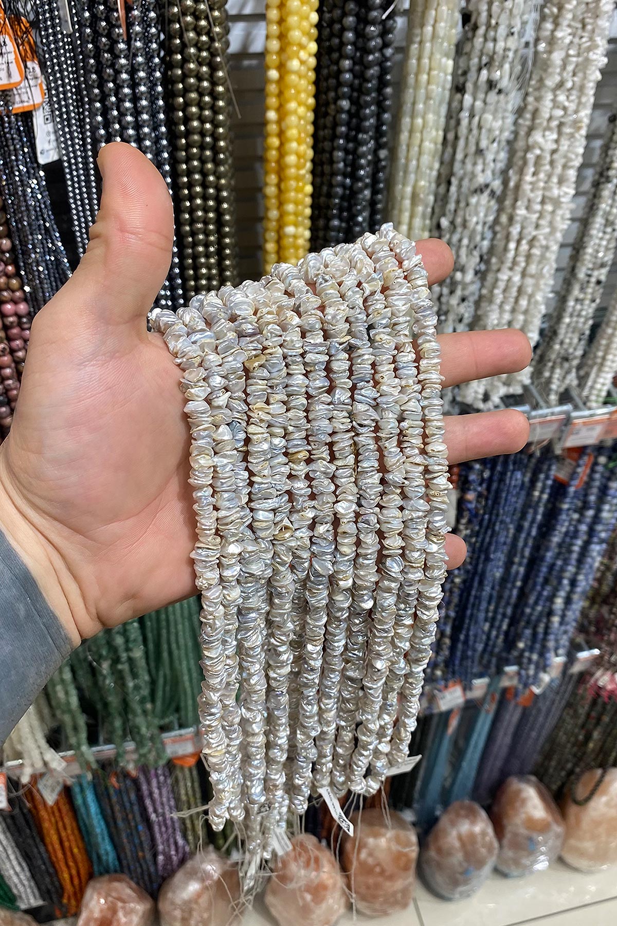 İnci Doğal Taş Şekilsiz Rondela Kesim 7x3mm Dizi (0144-0787)