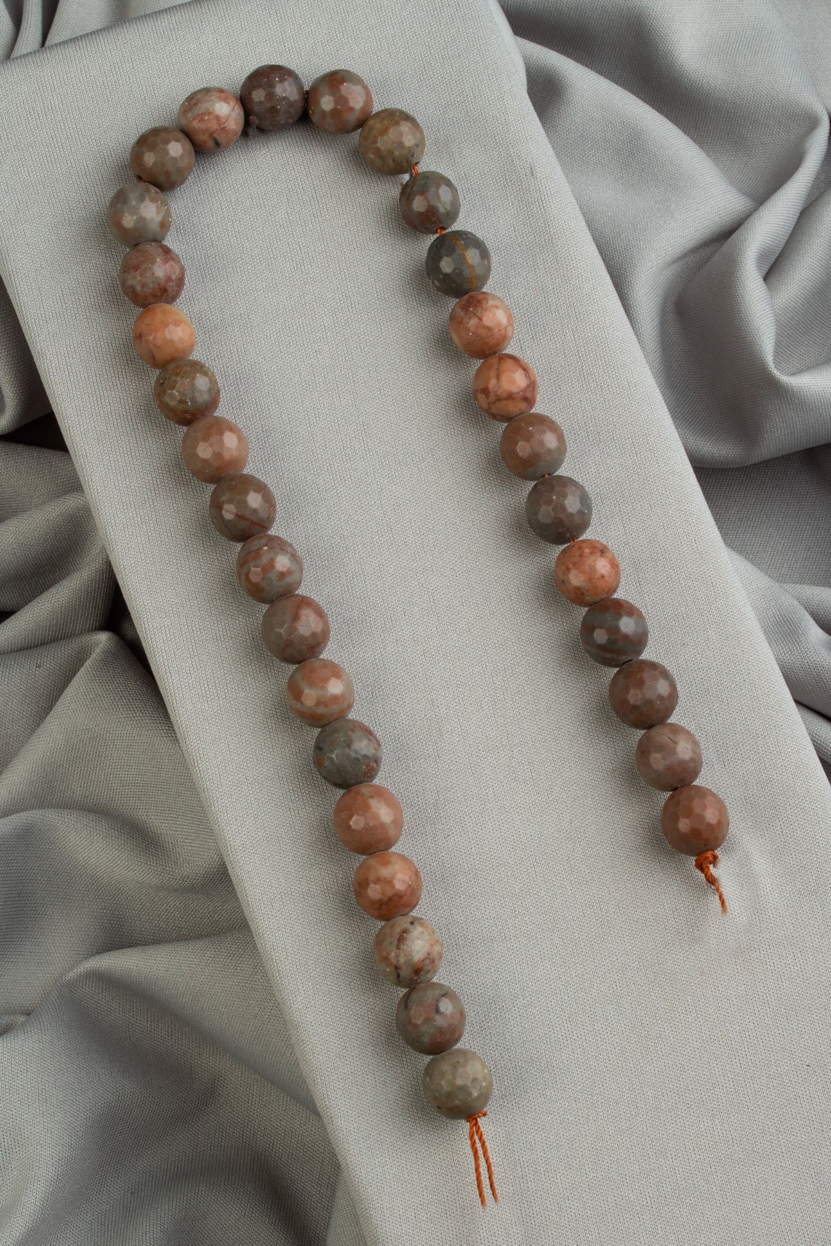 Jasper Natural Stone Shiny Globe Facet Cut 12mm String Of Beads (0142-0043)