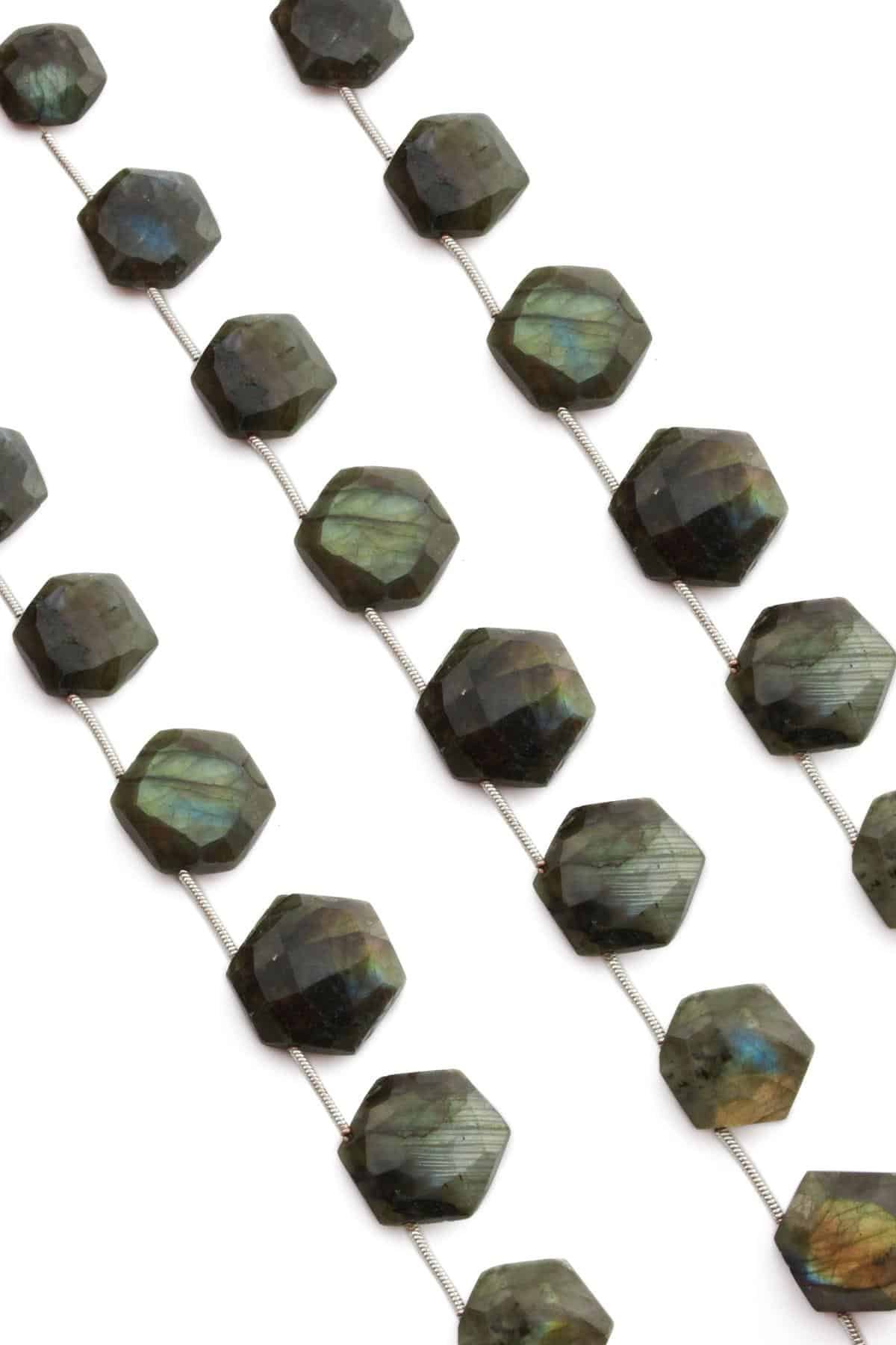 Labradorite Natural Stone Flat Hexagon Crystal Cut 17x7mm String Of Beads [AA]
