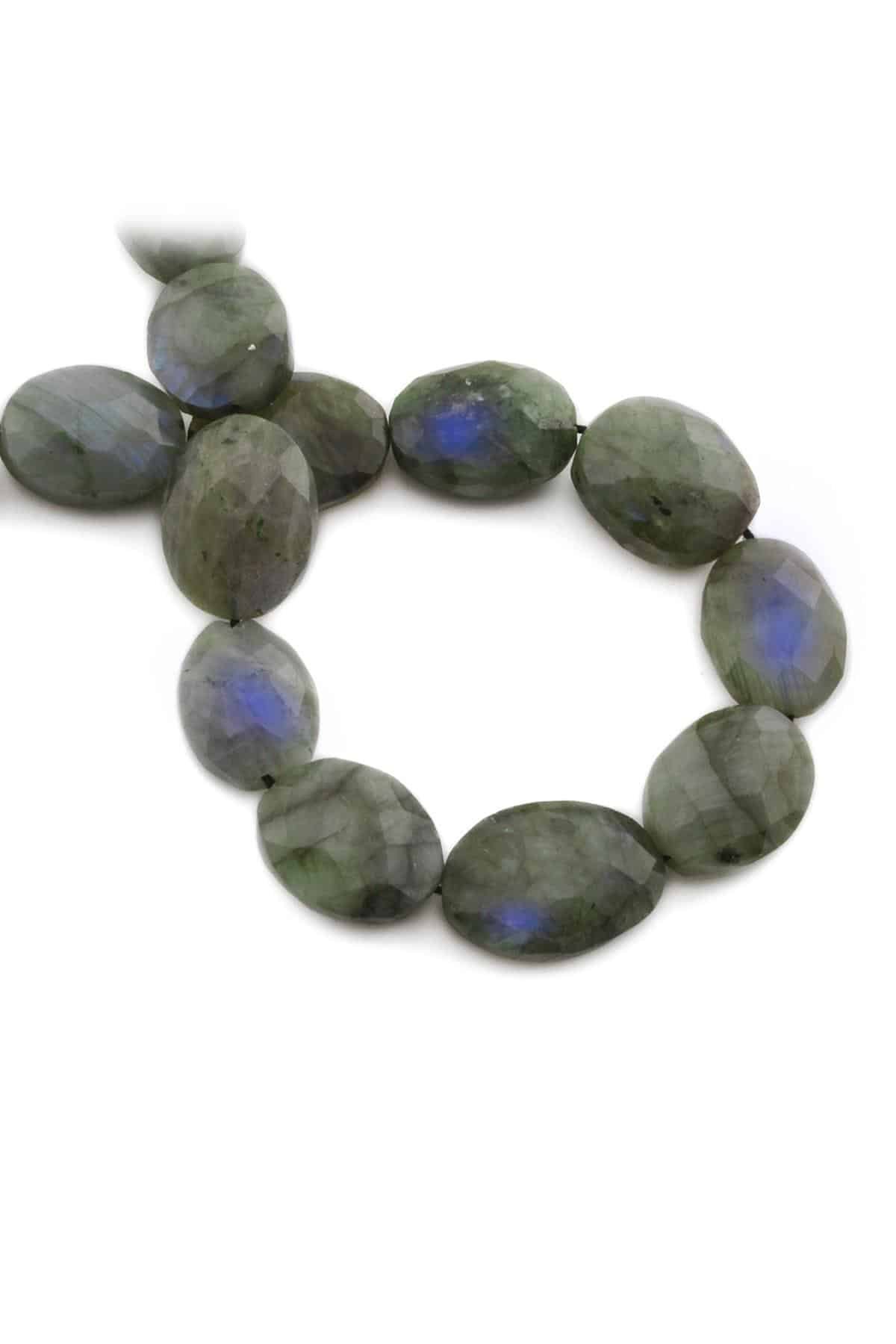 Labradorite Natural Stone Flat Oval Crystal Cut 16x18mm String Of Beads [AA]
