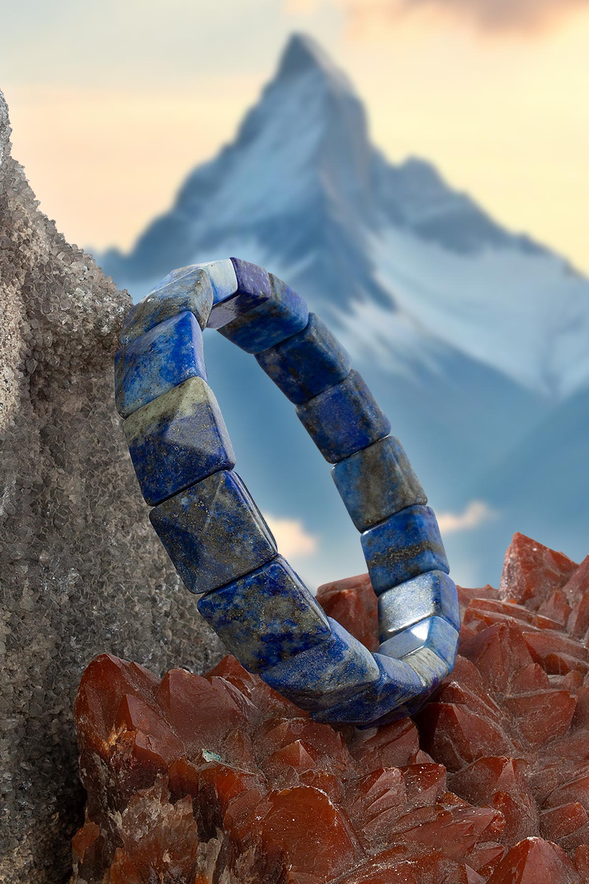 Lapis Doğal Taş Parlak Kare Faset Kesim Roleks 12x12mm Bileklik (BLKRLK-0119)