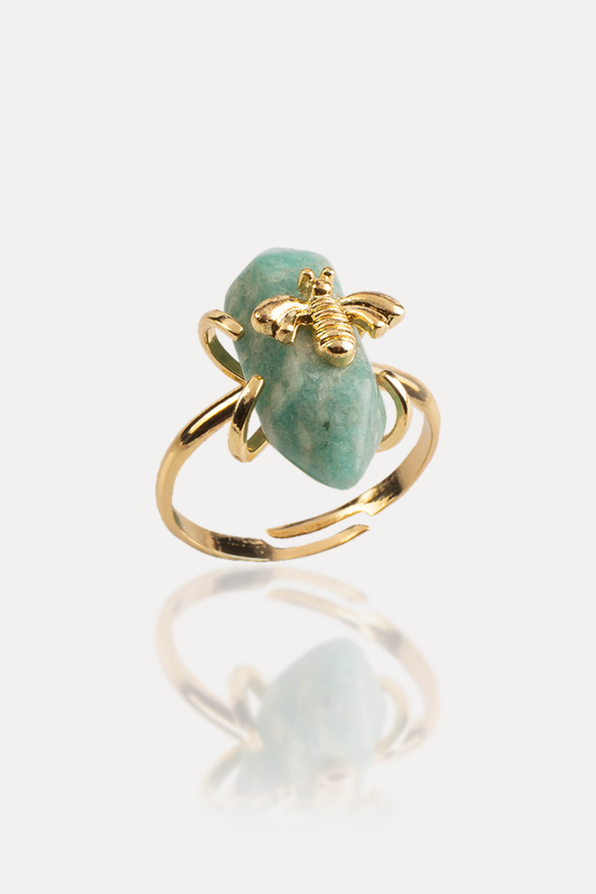 Larimar Doğal Taş Çift Uçlu Prizma Kesim Pirinç Üzeri Altın Kaplama Ayarlanabilir Yüzük (DGLYZK-0211)