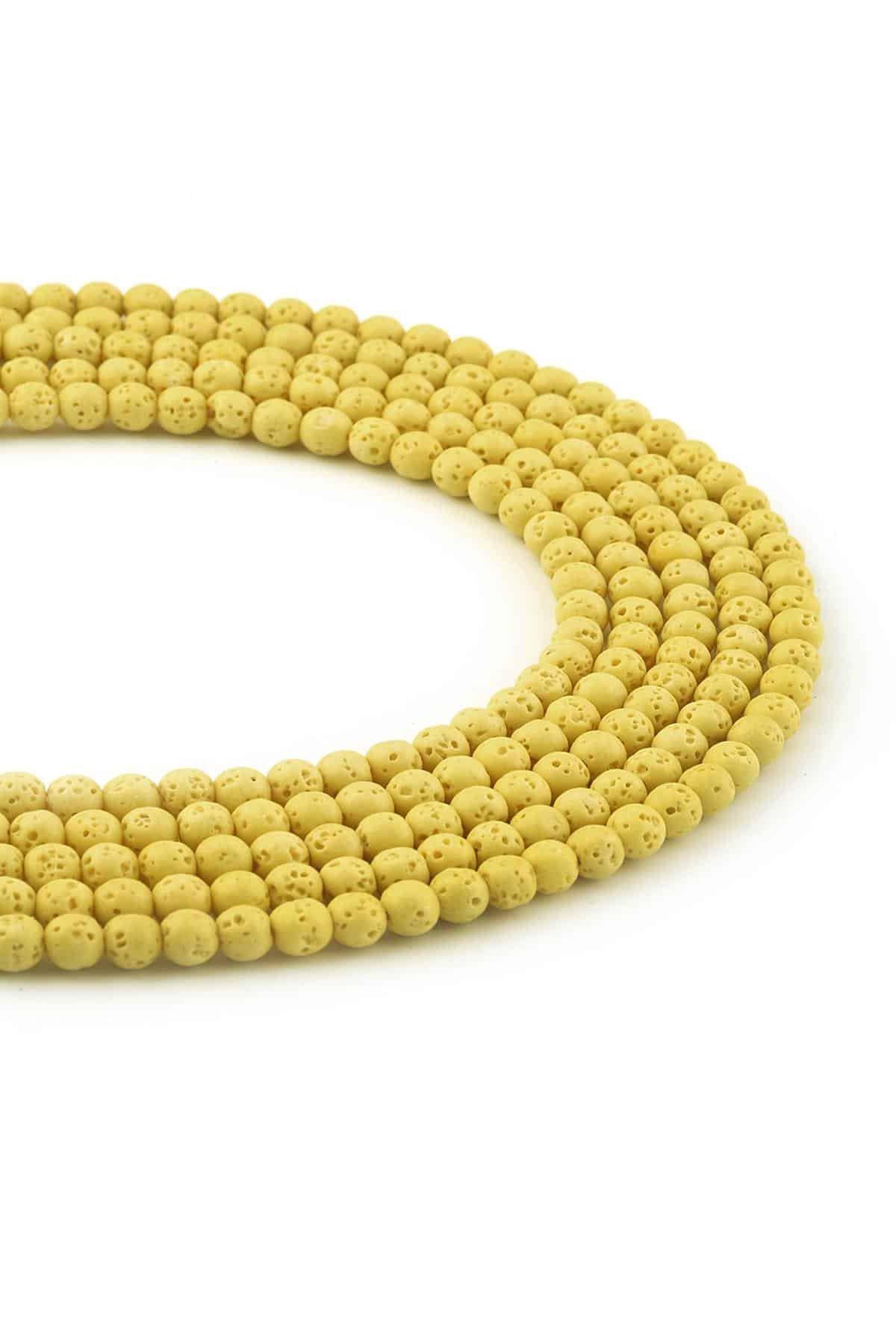 Lava Stone Natural Stone Matte Yellow Globe Cut 4mm String Of Beads (0140-0942)