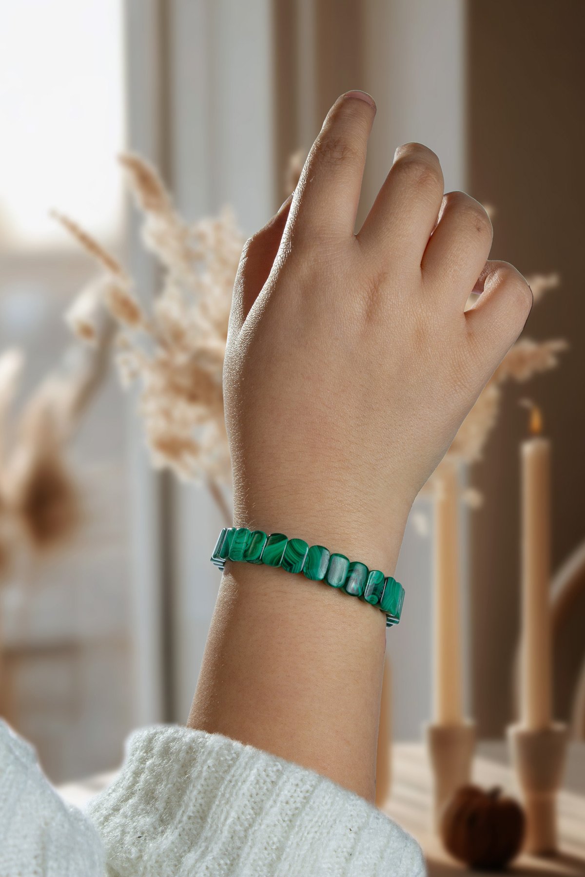 Malakit Doğal Taş Oval Kesim Roleks Bileklik
