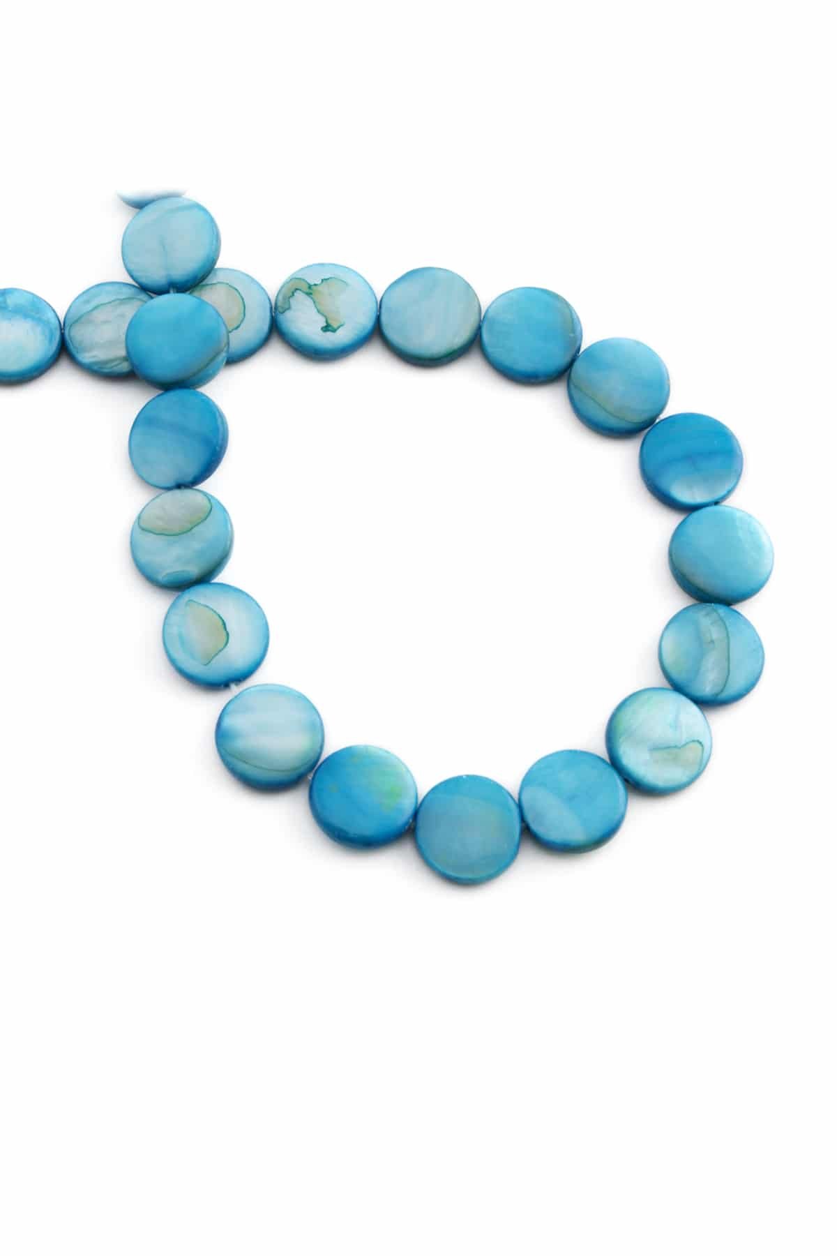 Sedef Doğal Taş Parlak Açık Mavi Daire Kesim 10x3mm Dizi [Ab+] (6075-0004)