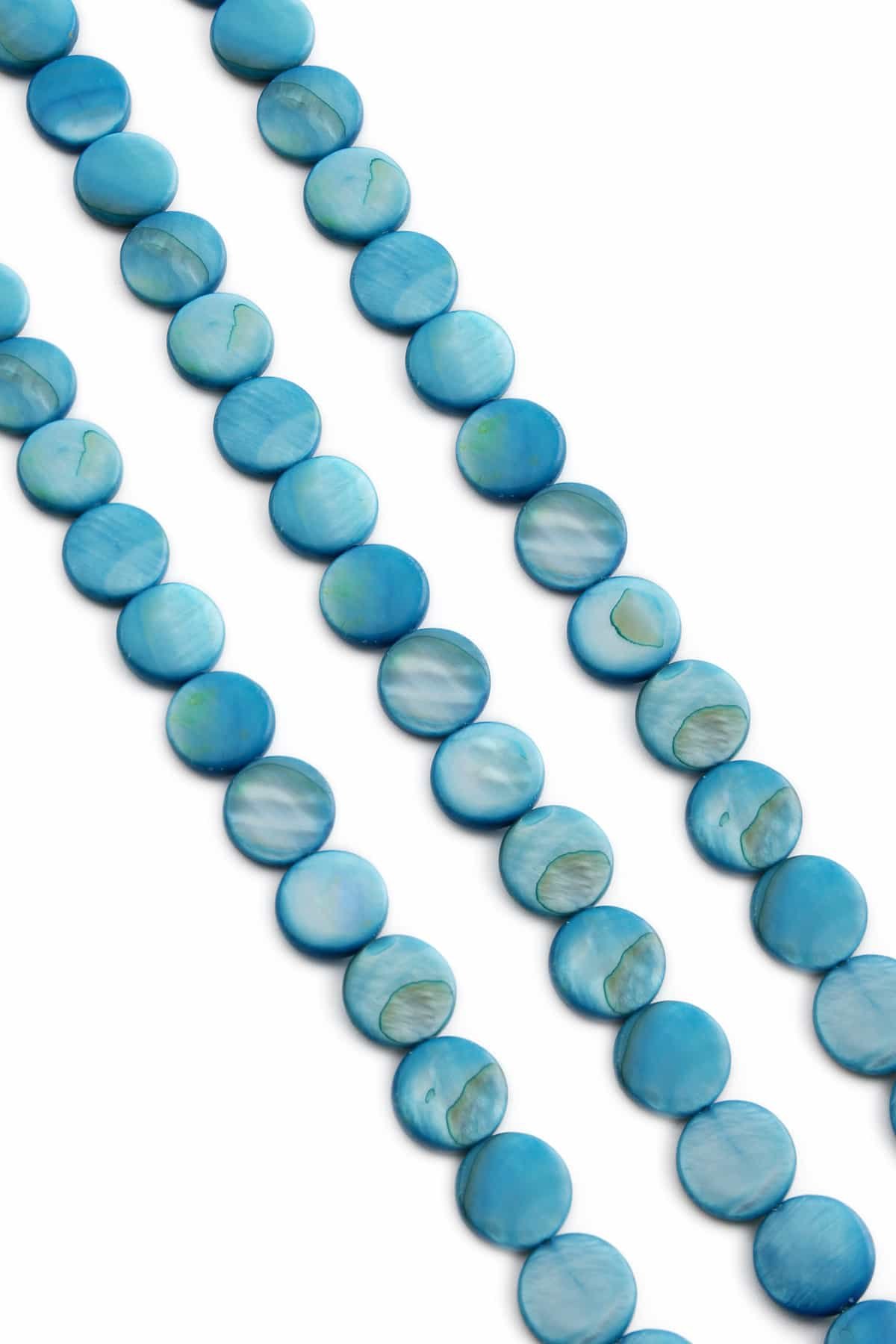 Sedef Doğal Taş Parlak Açık Mavi Daire Kesim 10x3mm Dizi [Ab+]