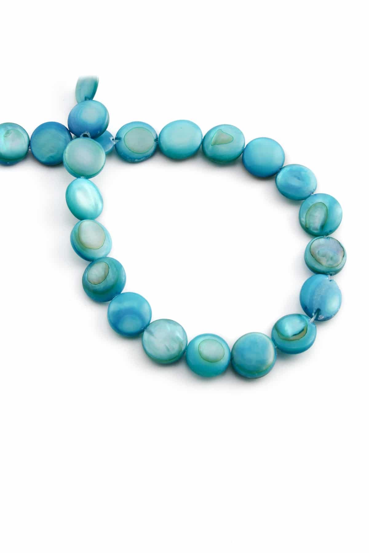Sedef Doğal Taş Parlak Açık Mavi Daire Kesim 9x3mm Dizi Ab+ (6074-0004)