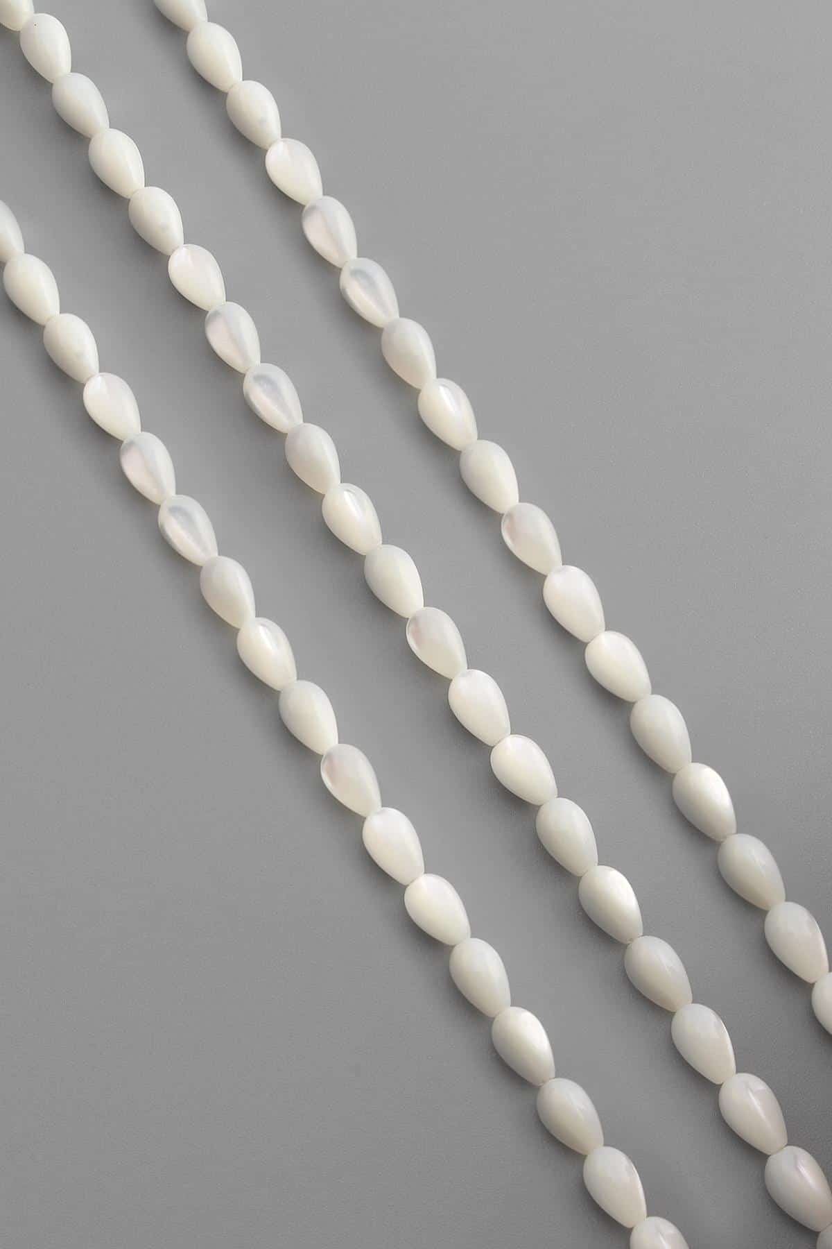 Sedef Doğal Taş Parlak Beyaz Damla Kesim 5x8mm Dizi [Aa]