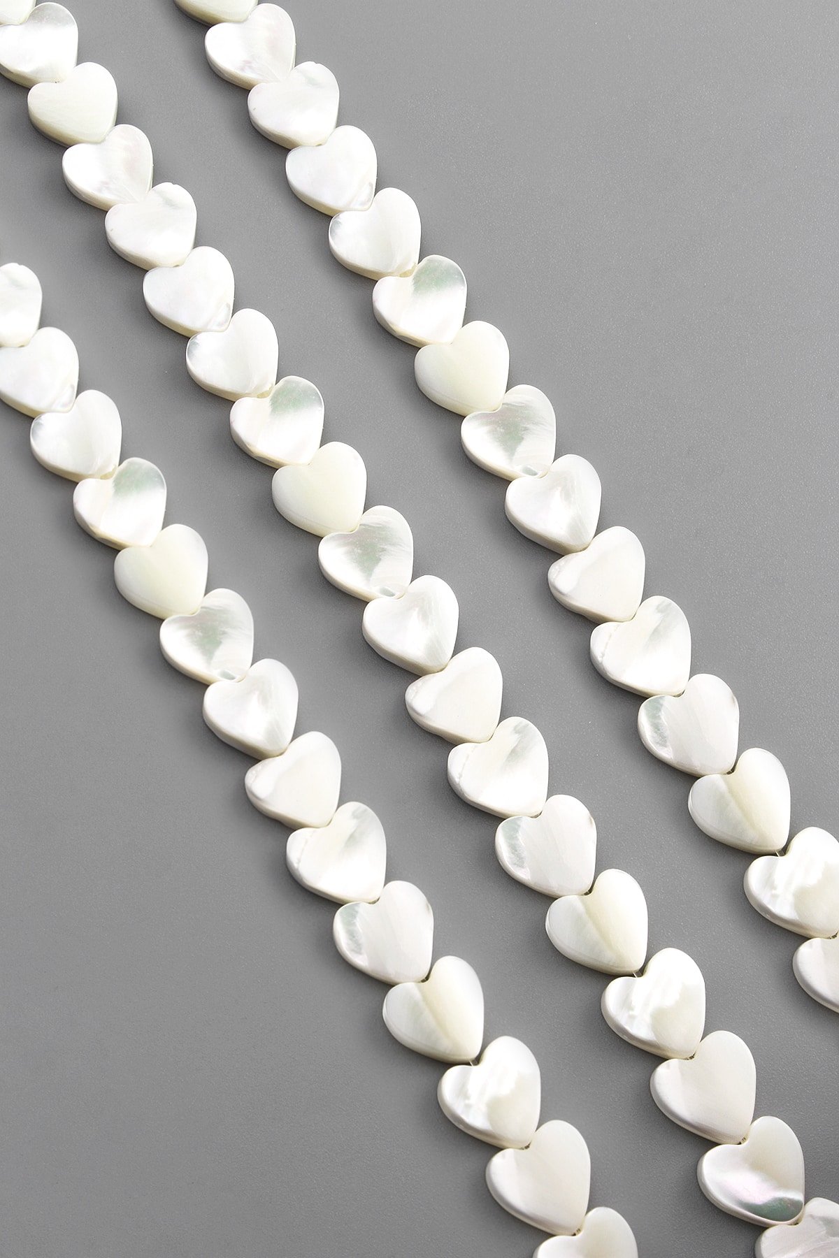 Sedef Doğal Taş Parlak Beyaz Kalp Kesim 10x3mm Dizi [Aa] (6070-0001)