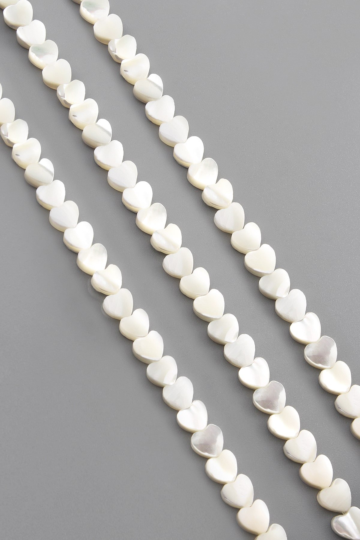 Sedef Doğal Taş Parlak Beyaz Kalp Kesim 6x3mm Dizi [Aa]