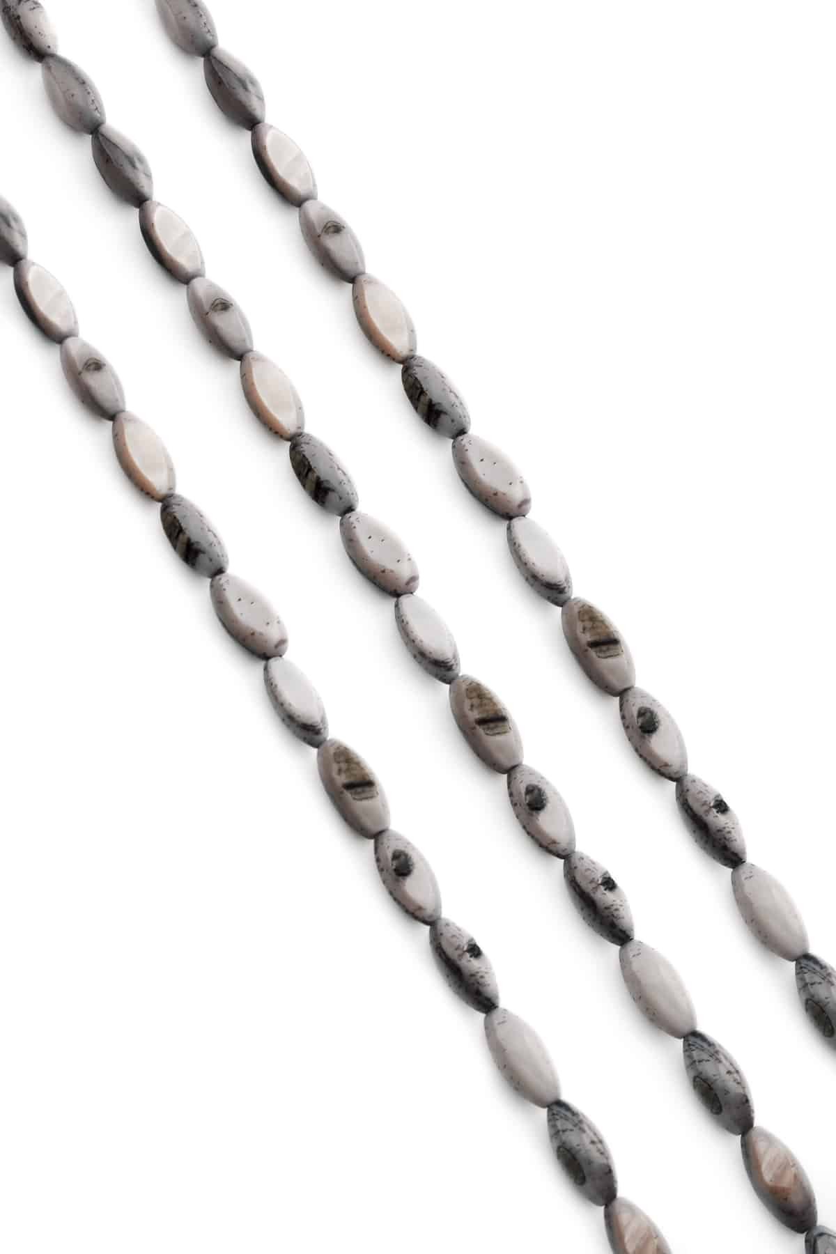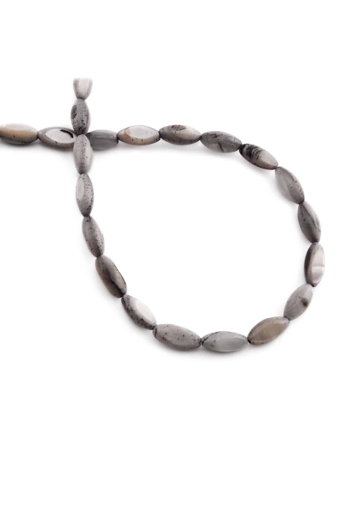 Sedef Doğal Taş Parlak Gri Arpa Kesim 5x9mm Dizi Ab+
