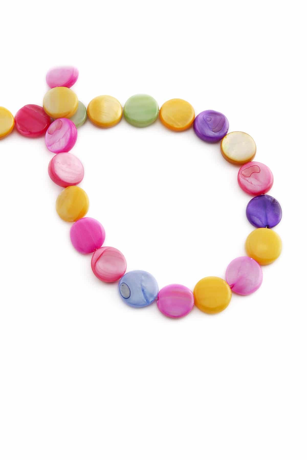Sedef Doğal Taş Parlak Karışık Daire Kesim 10x3mm Dizi [Ab+] (6075-0013)