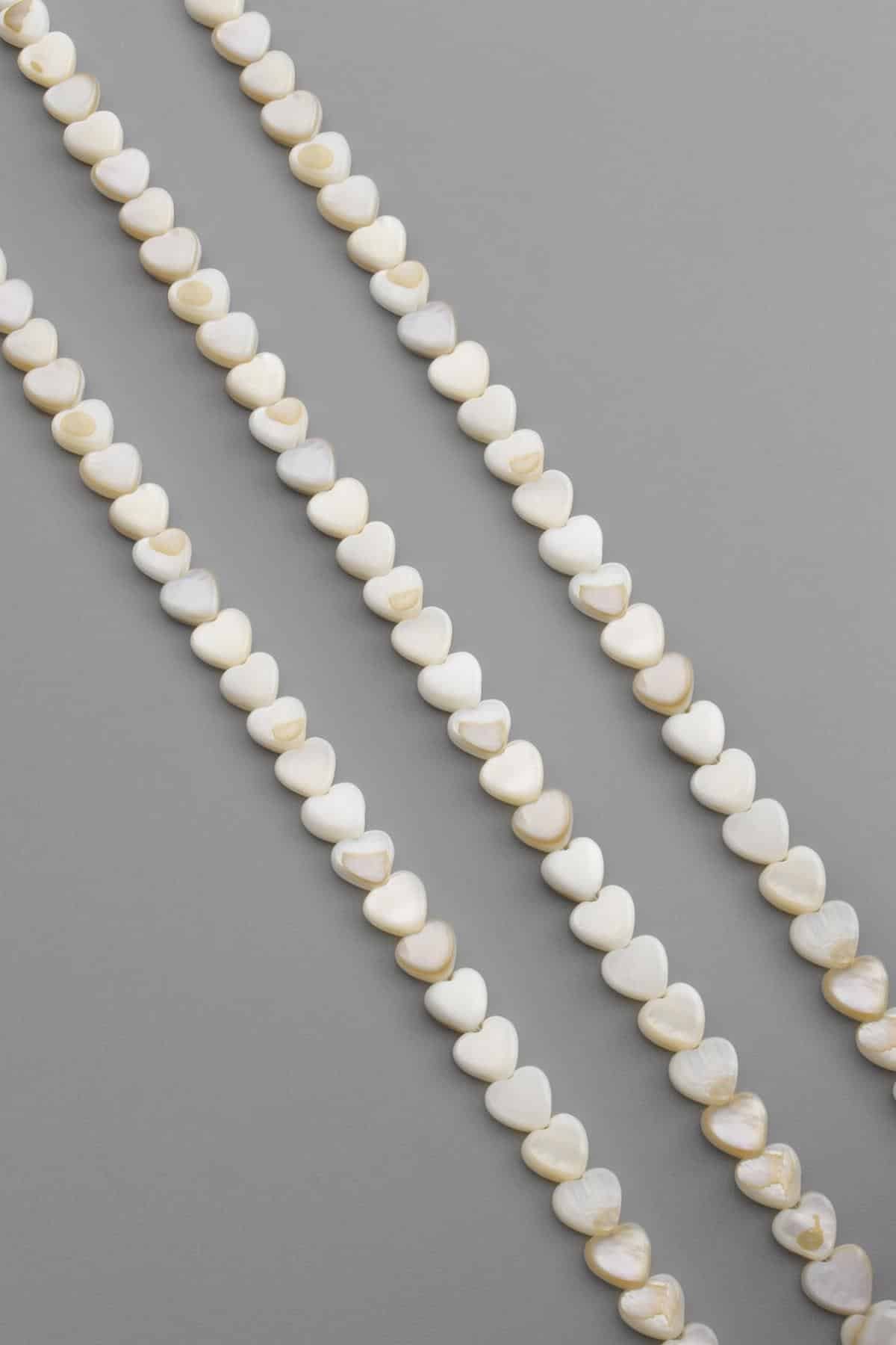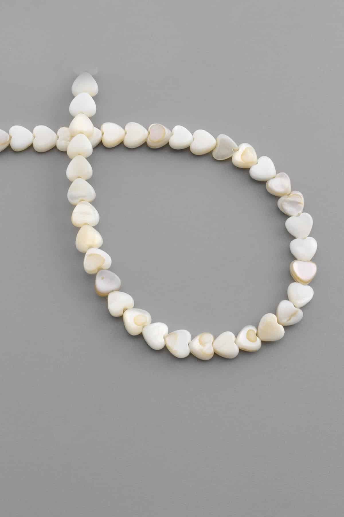 Sedef Doğal Taş Parlak Kırık Beyaz Kalp Kesim 6x3mm Dizi [Ab+]