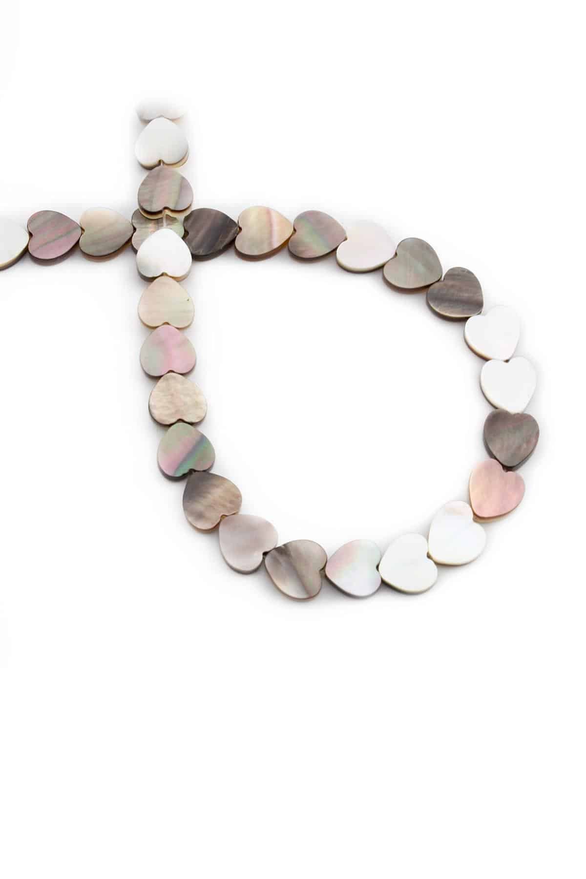 Sedef Doğal Taş Parlak Siyah/Beyaz Kalp Kesim 8x2mm Dizi [Ab+]