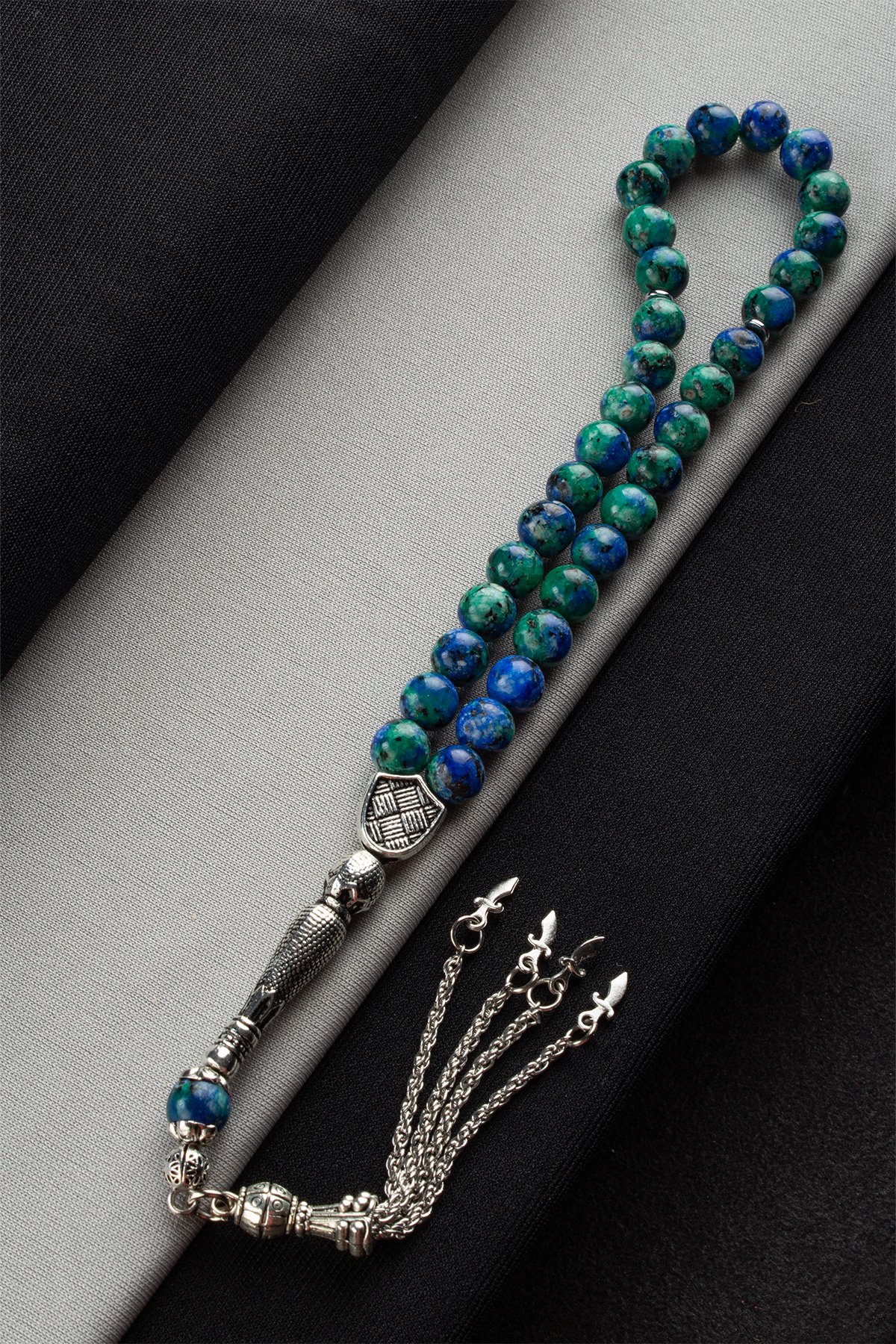 Sıkma Doğal Taş Küre Kesim Mavi Yeşil 33 lü 8mm Tesbih