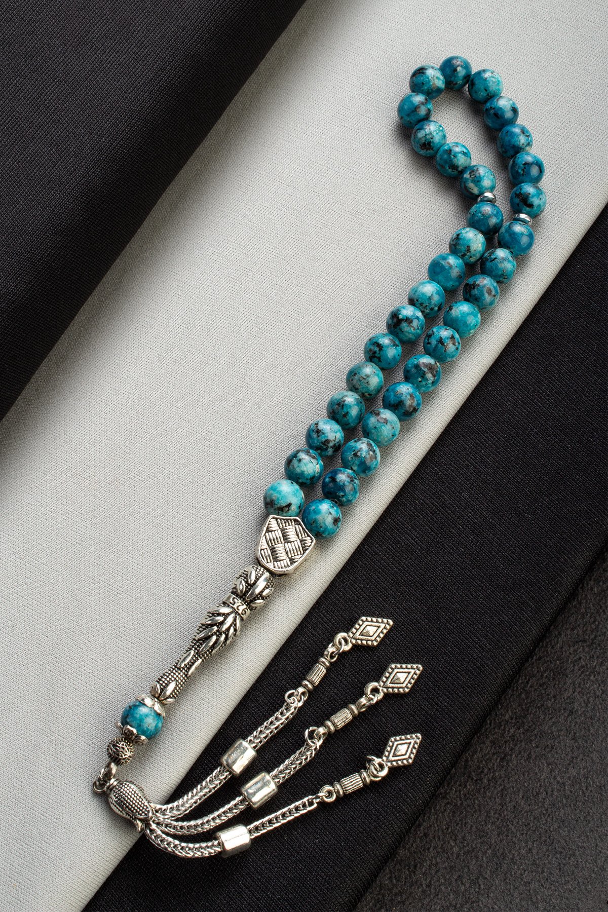 Sıkma Doğal Taş Mavi Küre Kesim 33 lu 8mm Tesbih