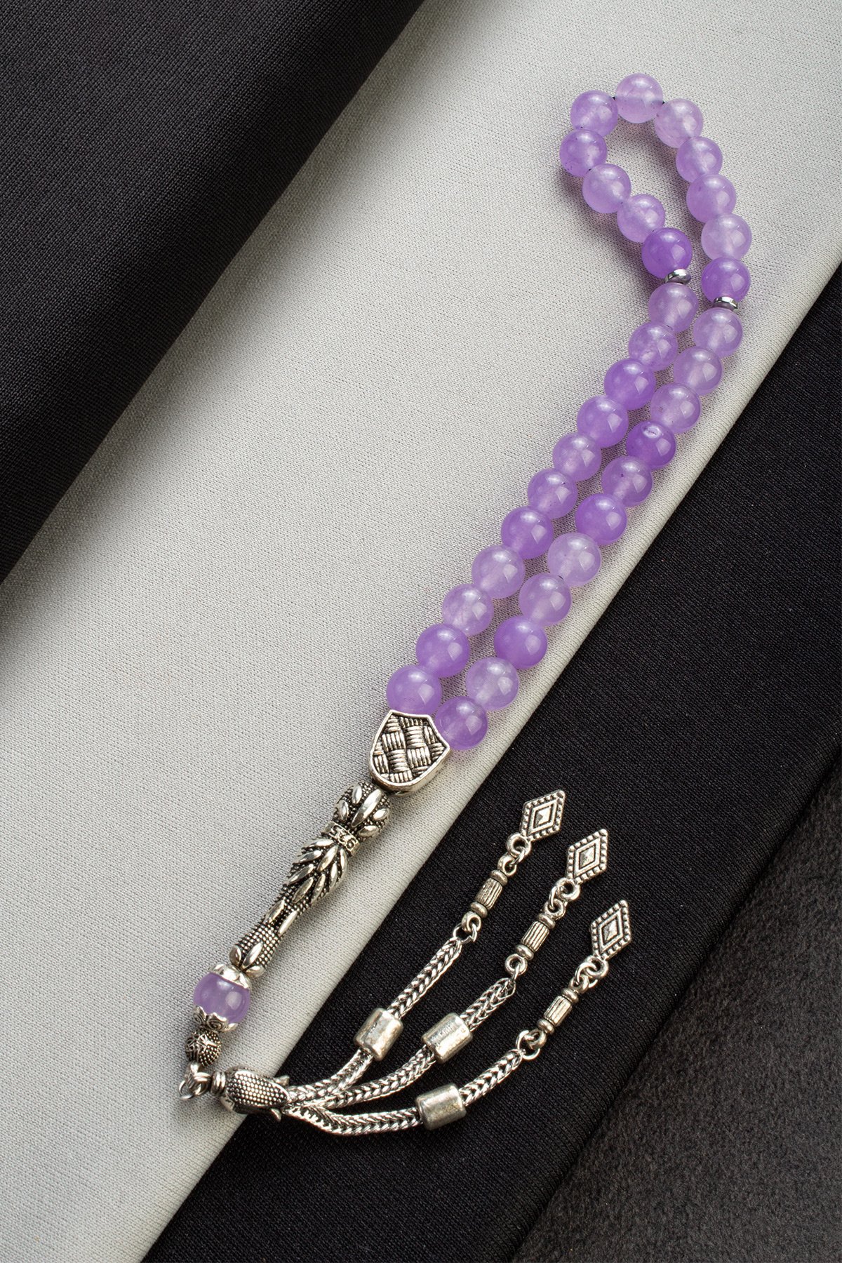 Sıkma Doğal Taş Mor Küre Kesim 33 lu 8mm Tesbih (TSBDGL-0135)