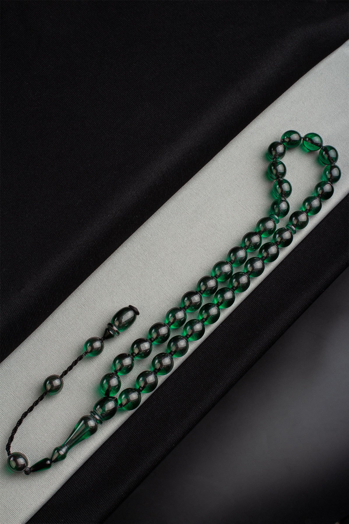 Sıkma Kehribar Yeşil Küre Kesim 11mm 33 Lu Tesbih (TSBKHR-0018)