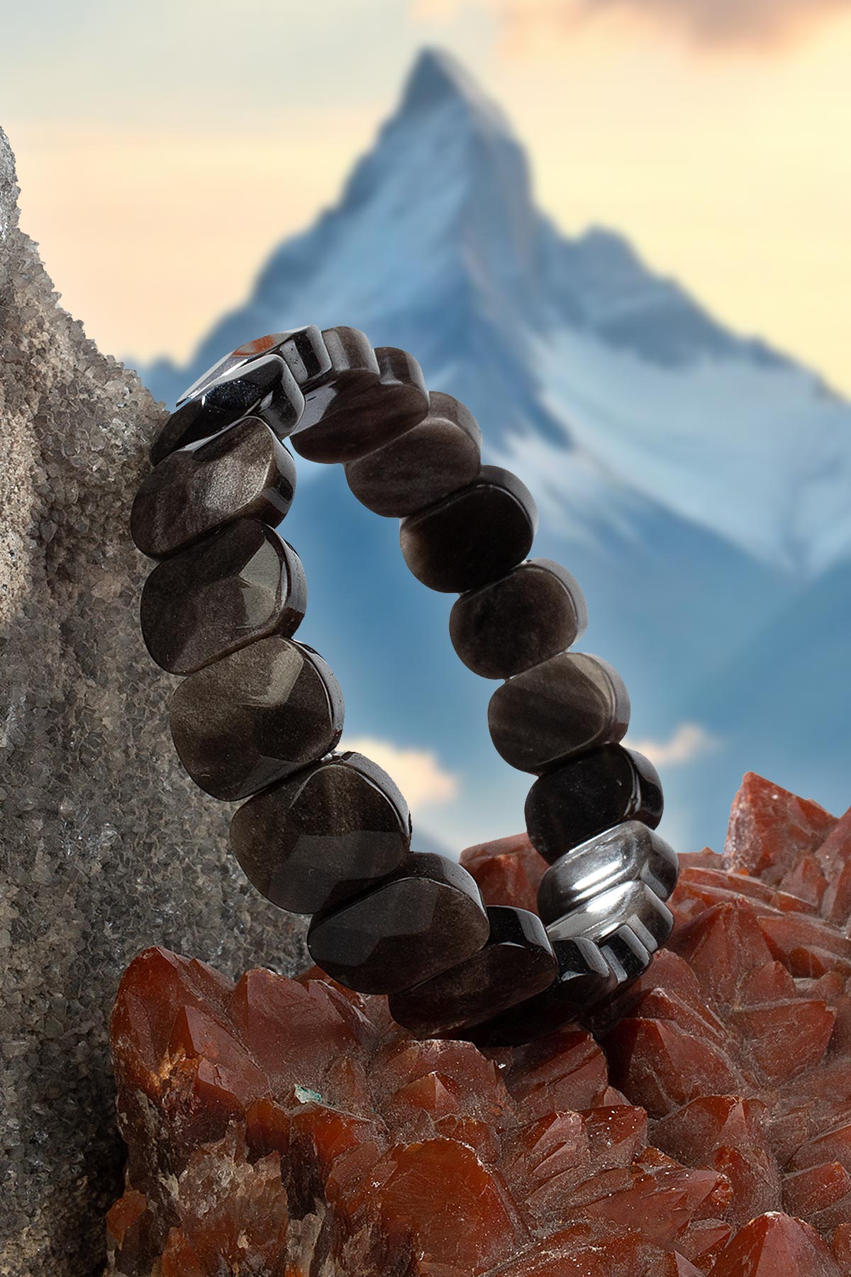 Siver Obsidyen Doğal Taş Parlak Oval Faset Kesim Roleks 11x15mm Bileklik (BLKRLK-0122)