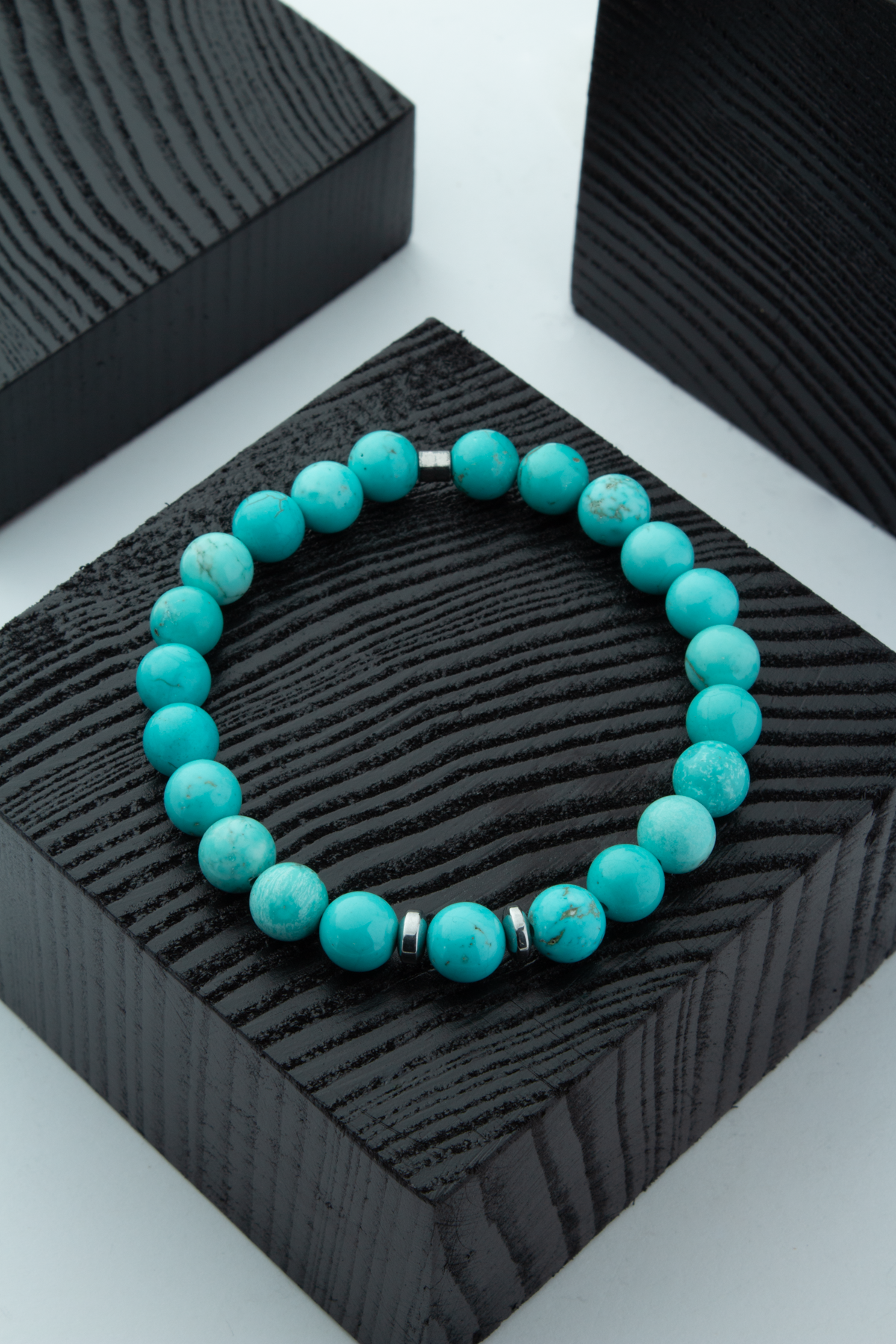 Turkuaz Doğal Taş Küre Kesim Bileklik (BLKMSN-0119)