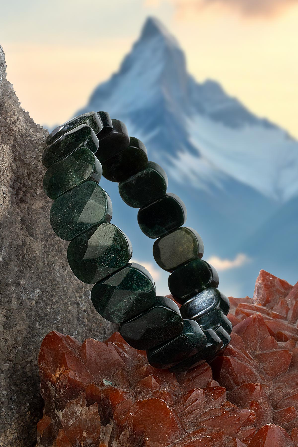 Yosunlu Akik Doğal Taş Parlak Oval Faset Kesim Roleks 11x15mm Bileklik (BLKRLK-0118)