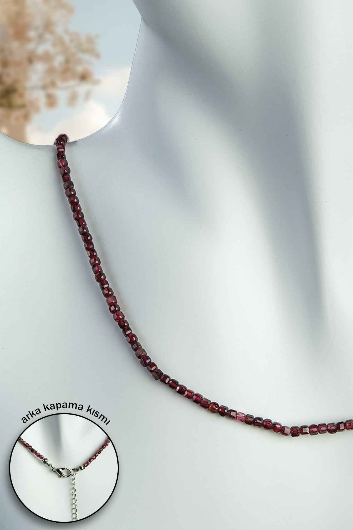 Garnet Doğal Taş Küp Kesim Zincir Kapamalı Kolye