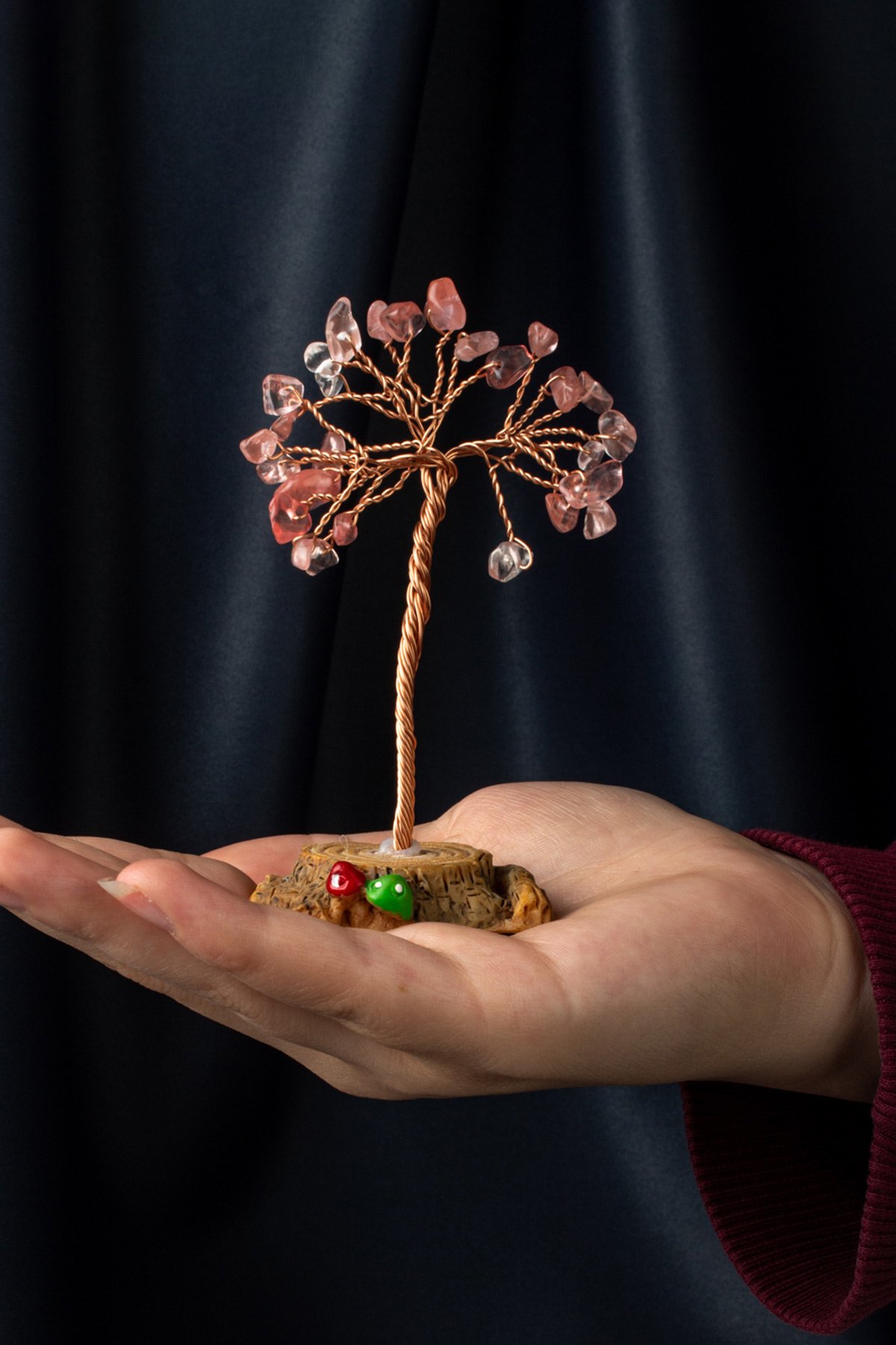 Gül Kuvars Taşı El Yapımı Doğal Taş Dekoratif Ağaç
