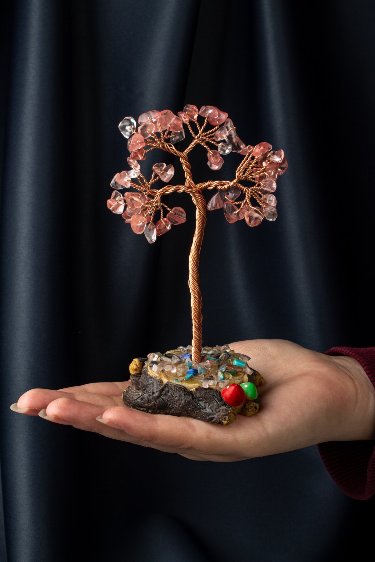 Gül Kuvars Taşı El Yapımı Doğal Taş Dekoratif Ağaç