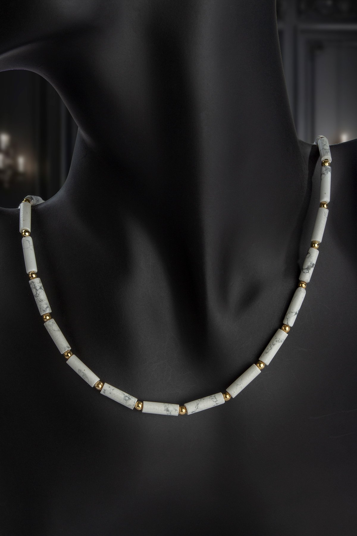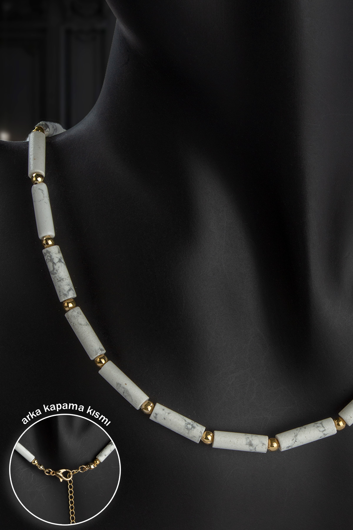 Havlit Doğal Taş Silindir Kesim Zincir Kapamalı Kolye