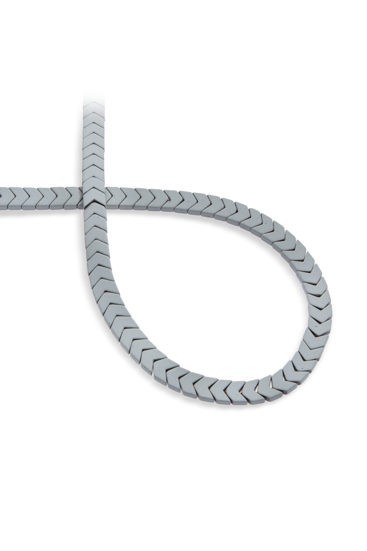 Metalik parlaklığıyla bilinen Hematit, demir oksit içeriği nedeniyle koyu gri-siyah/kırmızı tonlarda olabilir. Sert yapısıyla takı ve endüstride kullanılır; ağır ve dayanıklı bir mineraldir.