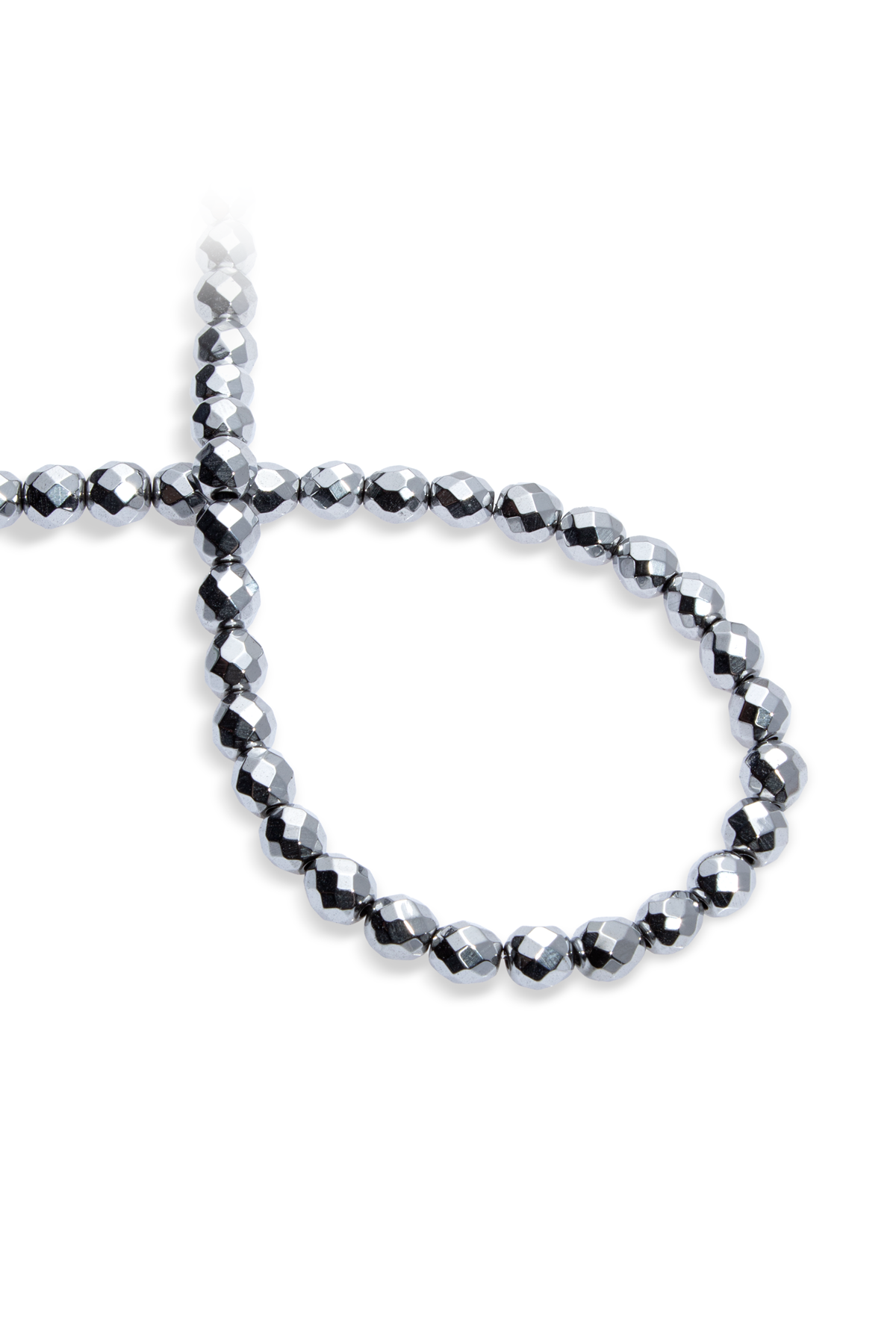 Hematit Doğal Taş Parlak Gümüş Faset Küre Kesim 8mm Dizi (5395-0009)