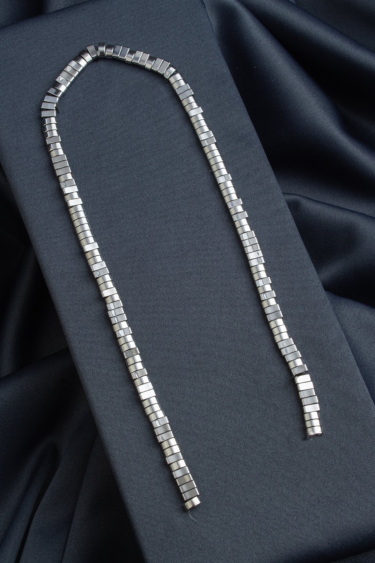 Hematit Doğal Taş Gümüş Bombeli Kesim Çift Delikli 3x6mm Dizi